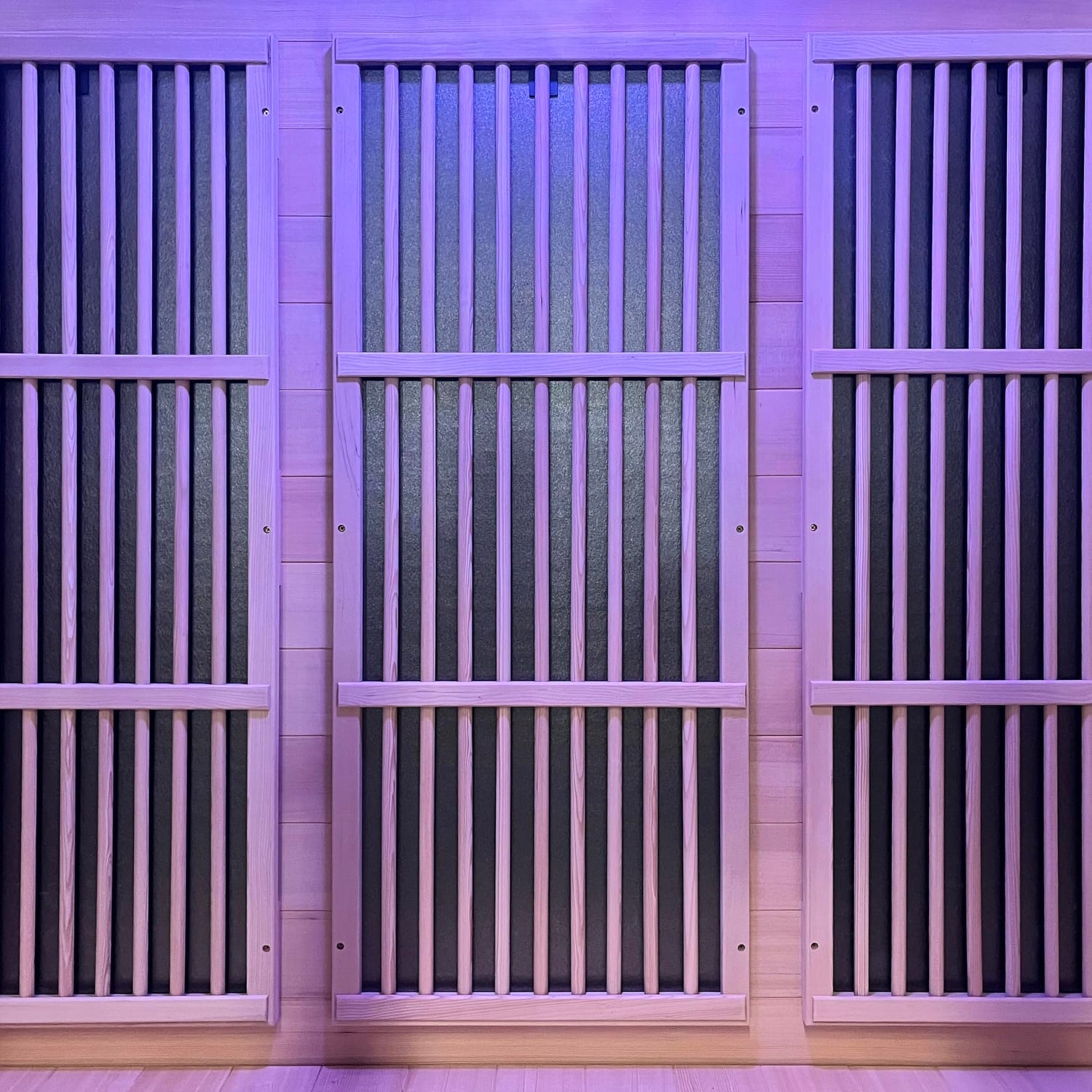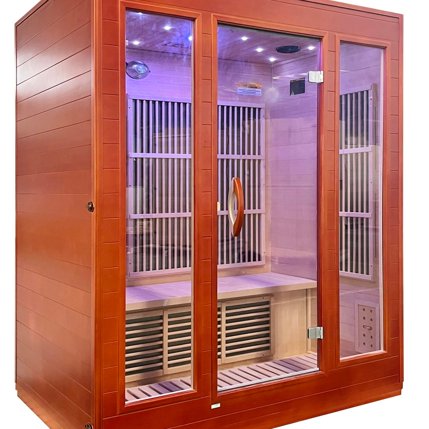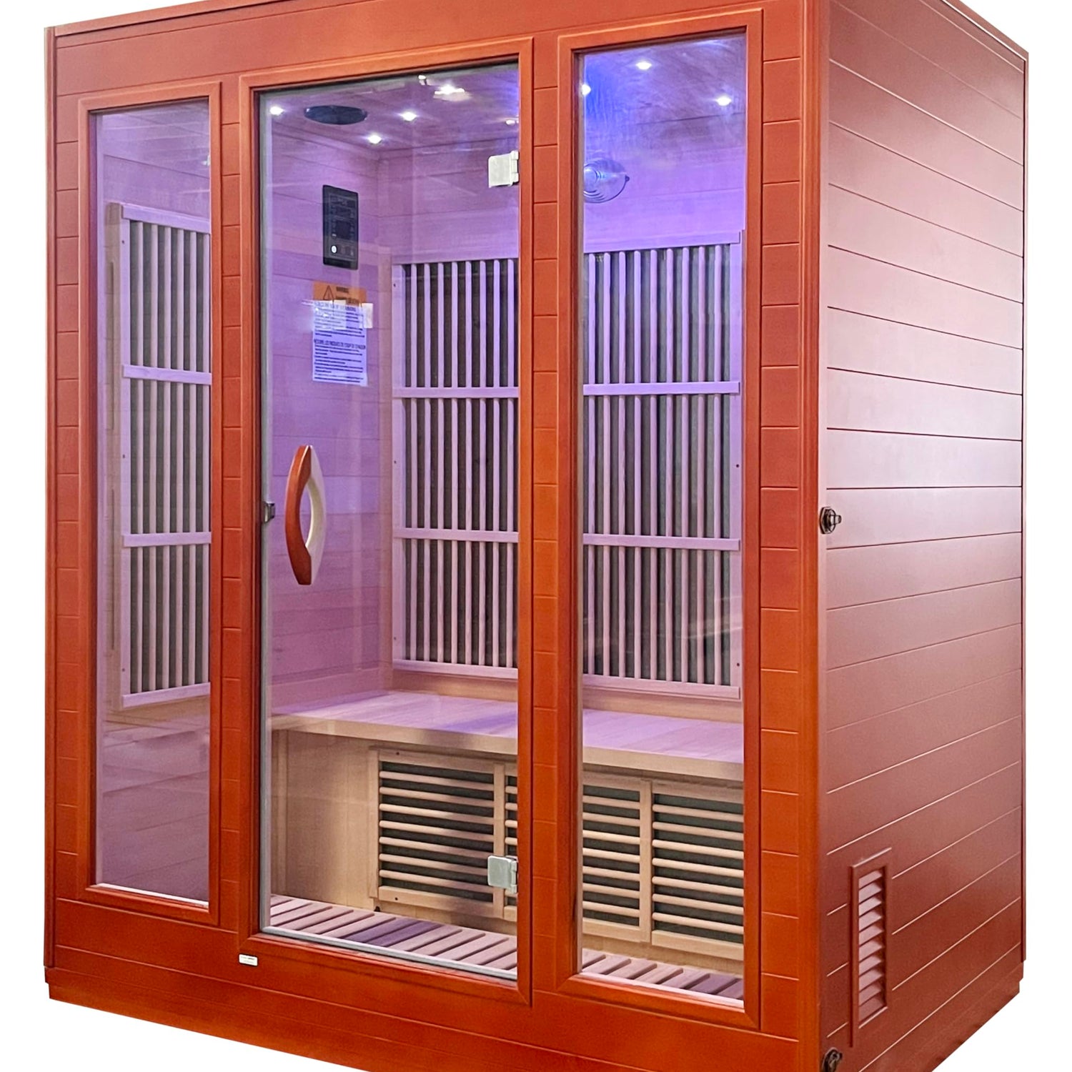- SEMI-TRANSPARENT MIRROR: Our electric infrared sauna in semi-transparent mirror astonishes with its ability to be a mirror on one side and a transparent glass on the other. However, our indoor saunas for the home have door handles that can hold your phone or iPad. So before you start, connect the built-in Bluetooth speaker and turn on your music or video, so every moment in the sauna will be enjoyable