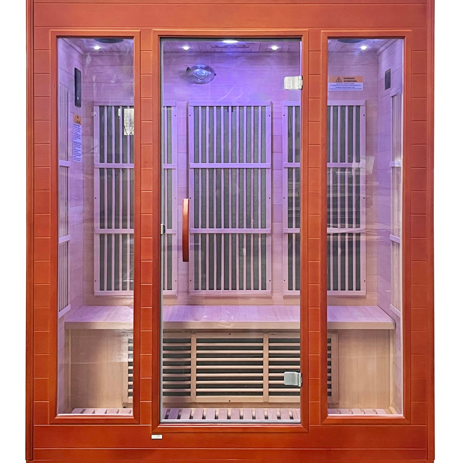 SteamSpa Home Sauna Room for 3 Person Hemlock Wooden Indoor Sauna Spa - Bluetooth Speaker, FM, Oxygen bar, Heating Plate, Three Colors Lanterns, Touch Control Panel Temperature