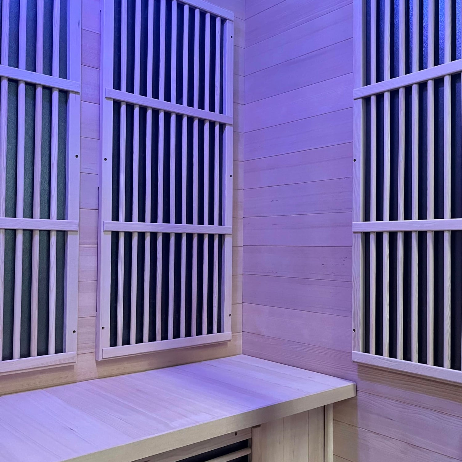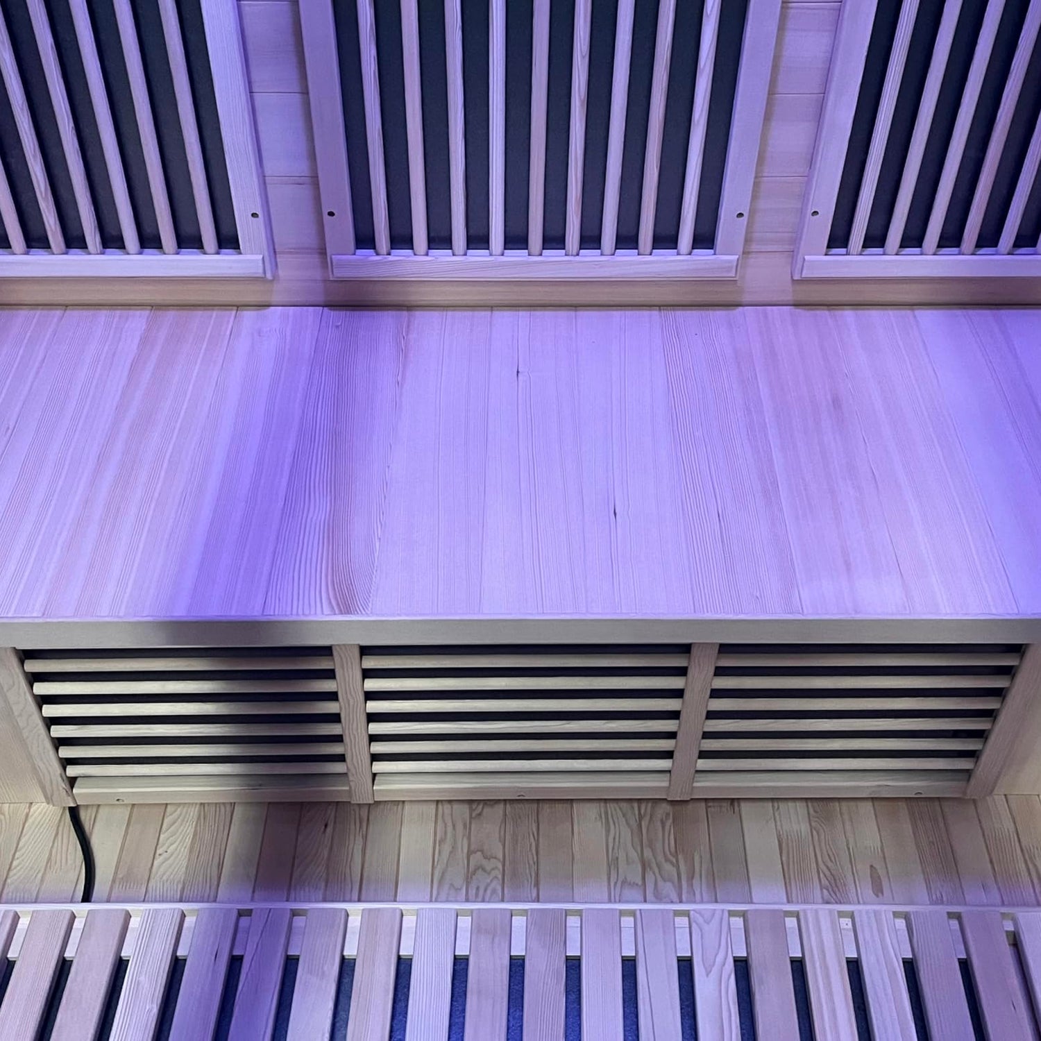 - BEHOLD FEATURES THAT SURROUNDS YOU: This stunning and stylish 2-person infrared sauna is designed to elevate your relaxation experience. Our heatwave infrared sauna includes features- Bluetooth speaker, FM, radio, oxygen bar, heating plate, three colors lanterns, USB, etc. and you can adjust the temperature with a remote, touch control panel low EMF heaters, for 10 minutes
