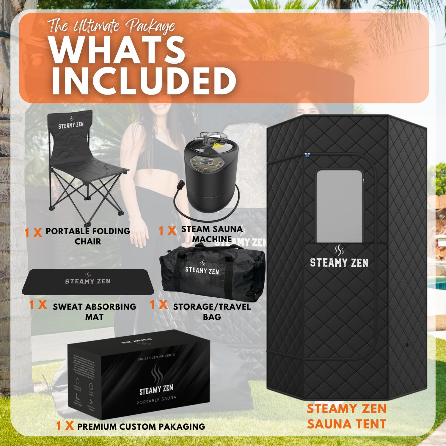 Steamy Zen Sauna - Portable Large Home Steam Sauna with 3L High Capacity Steamer, 1100W, Remote & Aromatherapy - Includes Absorbent Mat & Chair for Yoga & Weight Loss - Sauna Spa Experience