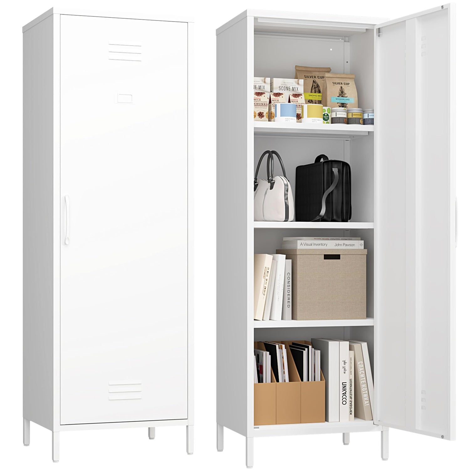 Steehoom Metal Storage Cabinet, Steel File Locker with 3 Shelves 59.06-inch high for School, Living Room, Bedroom, Office (White)