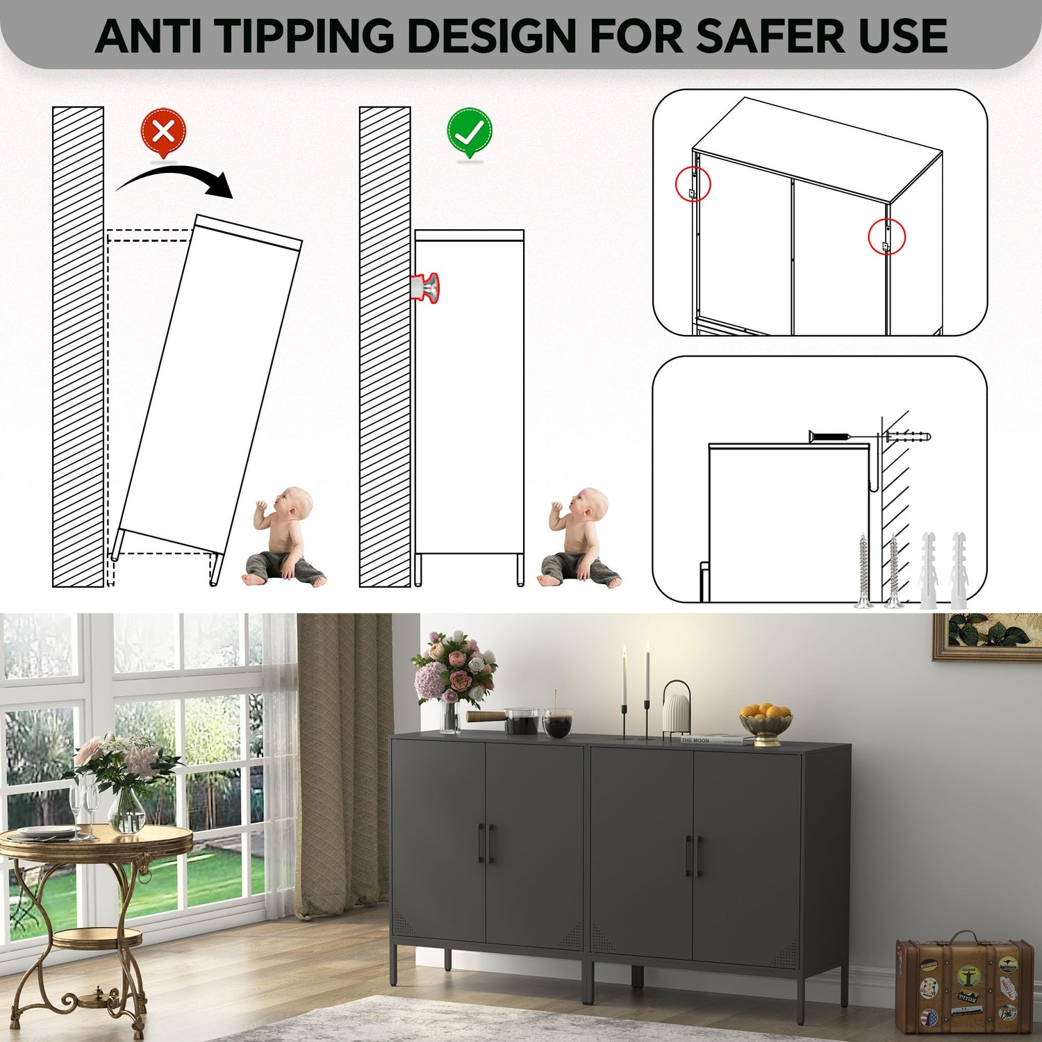 Steehoom Metal Storage Cabinet with Adjustable Shelves, Steel Buffet Sideboard for Entryway, Living Room, Dining Room, Kitchen, Office, Bar (Black)