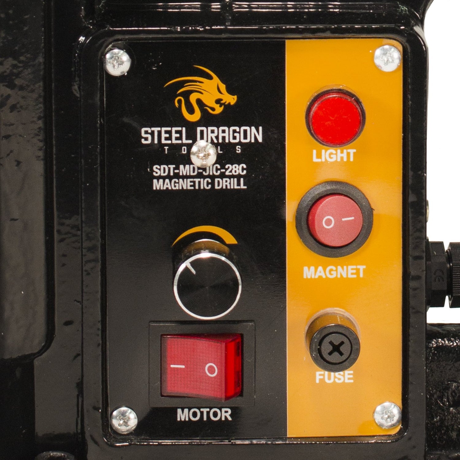 The Steel Dragon Tools MD50 Magnetic Drill Press will accept up to 2-inch, high-speed steel annular cutters with a maximum boring diameter of 2 in. (50 mm). This magnetic drill press will attach directly to the metal drilling surface with a powerful electromagnet. The electromagnet has 2,900 lbs. of max force and ensures the machine will not move during the drilling process.
