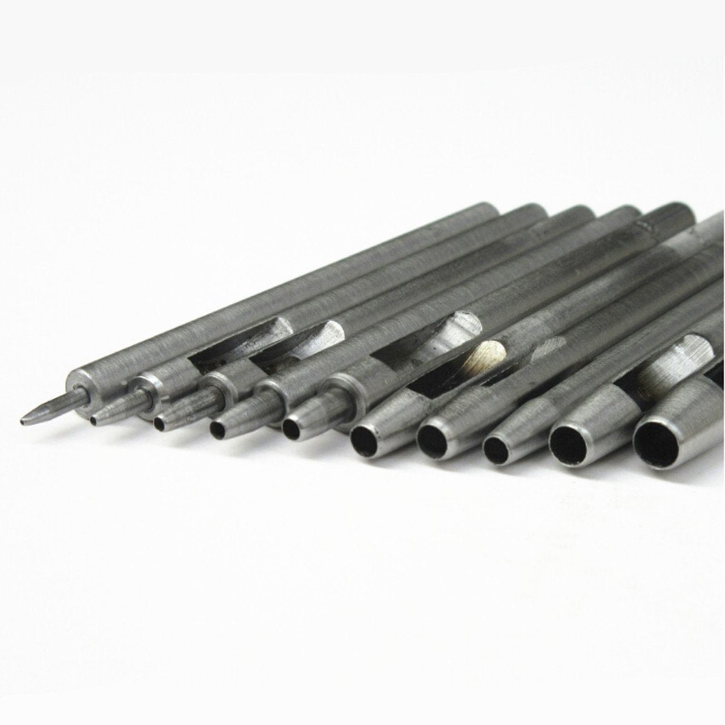 - 10Pcs different size: 0.5mm, 1.0mm, 1.5mm, 2.0mm, 2.5mm, 3.0mm, 3.5mm, 4.0mm, 4.5mm, 5.0mm. Covers all common hole-punching needs, from delicate wallet adjustments to heavy-duty bag straps, with included size markings for quick identification.