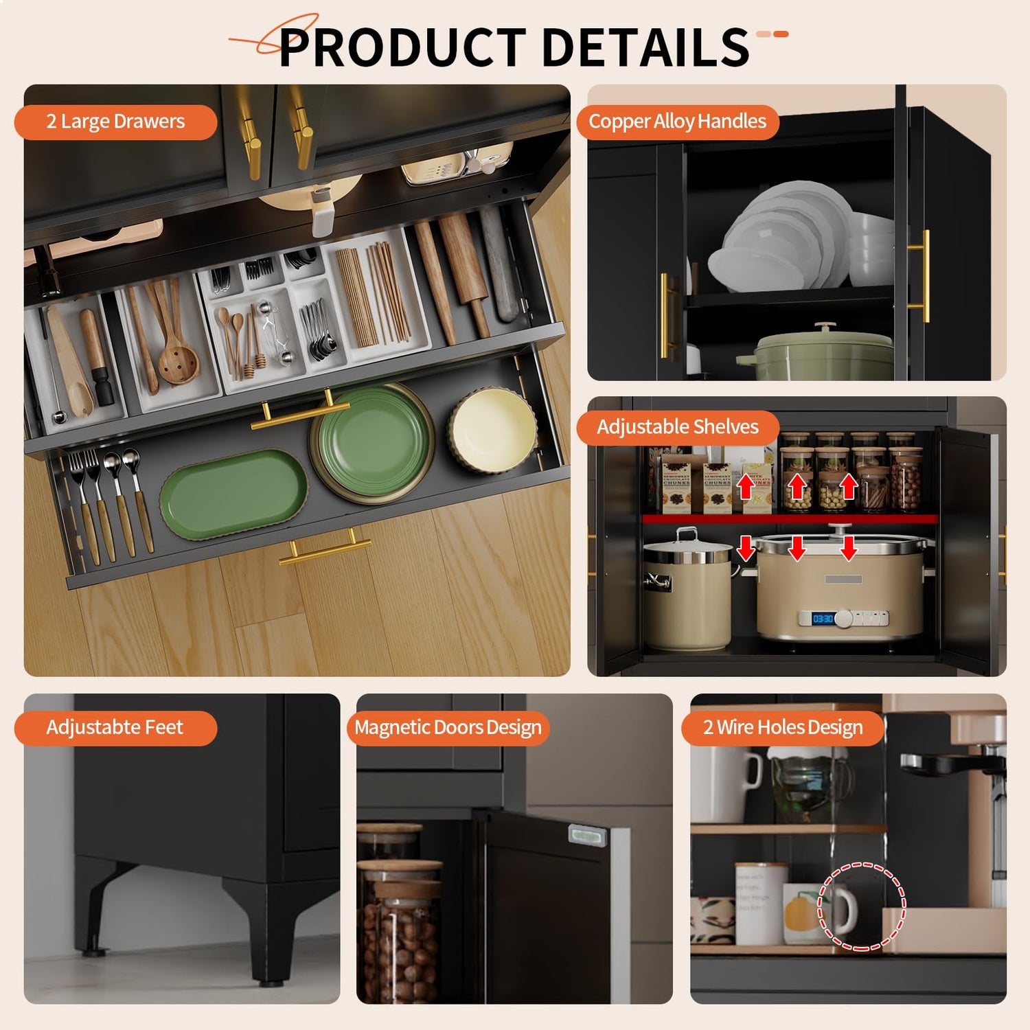 - Multi-Functional Storage Cabinets: With a modern design, the metal cabinet has a simple look that suits any home style. Not only can you use it as a kitchen pantry storage cabinet, but also as a cupboard, office cabinet, kitchen cabinet, tool cabinet, craft storage cabinet and garage cabinets.