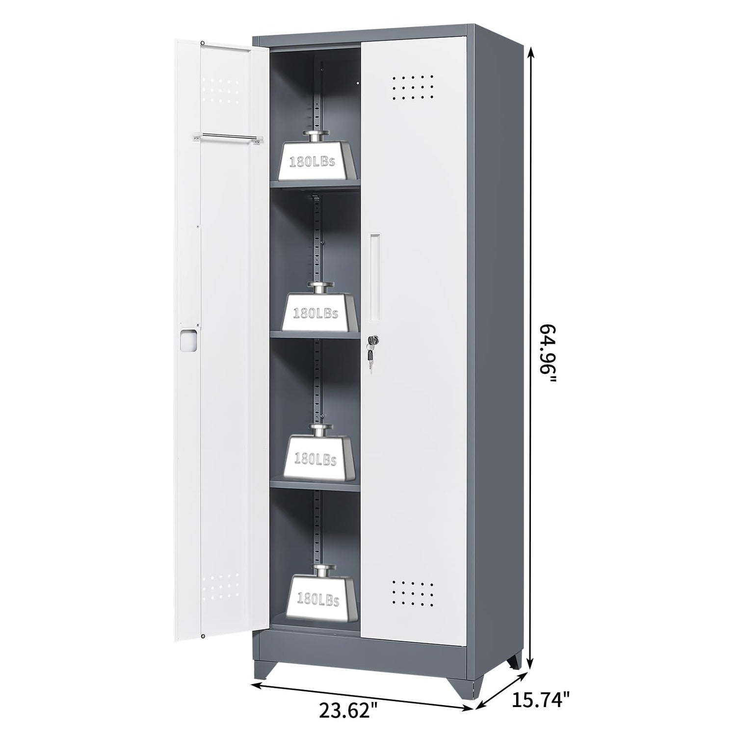 STEELIST Broom Closet, Metal Storage Cabinet with Hanging Rod, 65" Broom Tool Organizer, Metal Cabinet with Doors and Shelves, Tall Cleaning Storage for Home, Office, Garage, Balcony