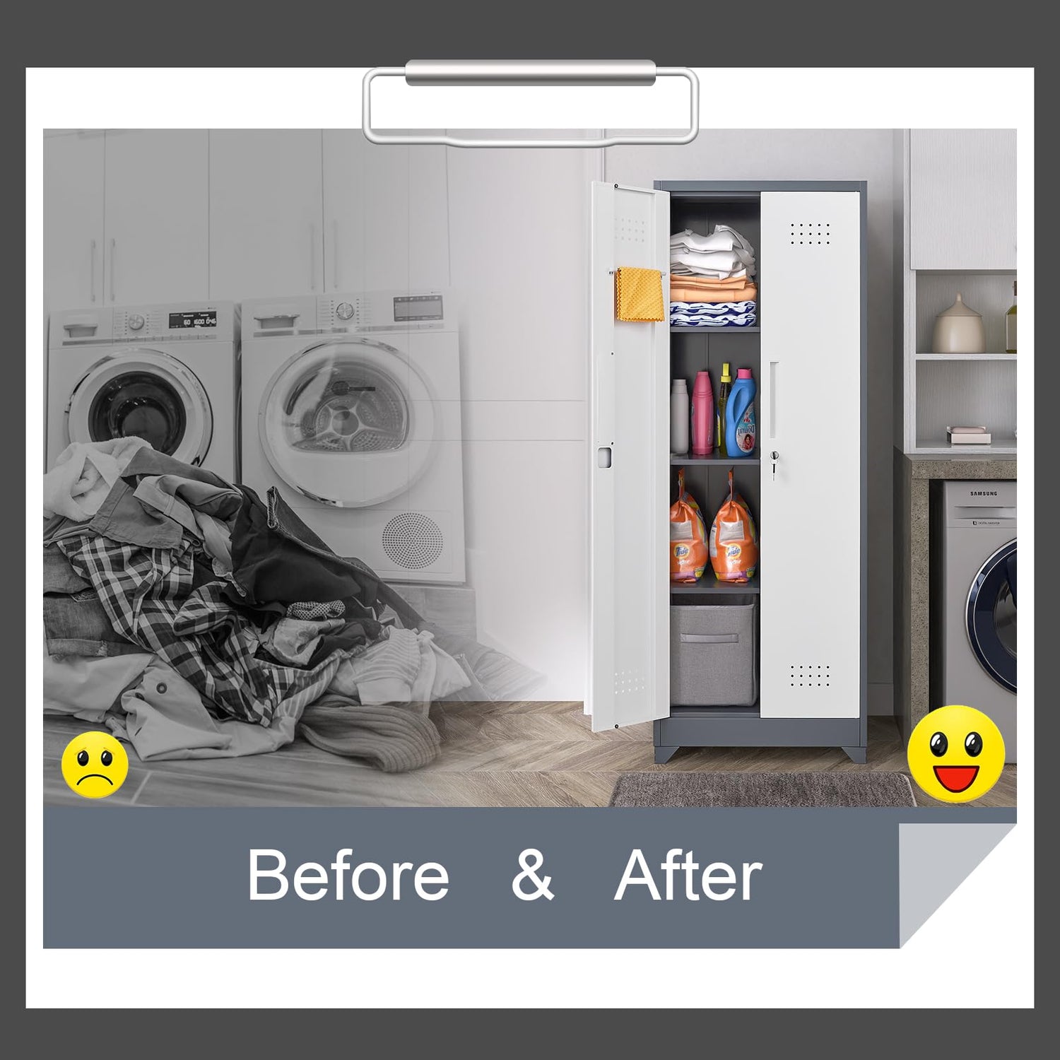 - [Breathable tool cabinet]:There are many vent holes on the top and bottom of our tall garage storage cabinet to allow the cabinet to breathe and stay dry. Suitable for places where cleaning supplies need to be stored to ensure that the storage space is always dry.
