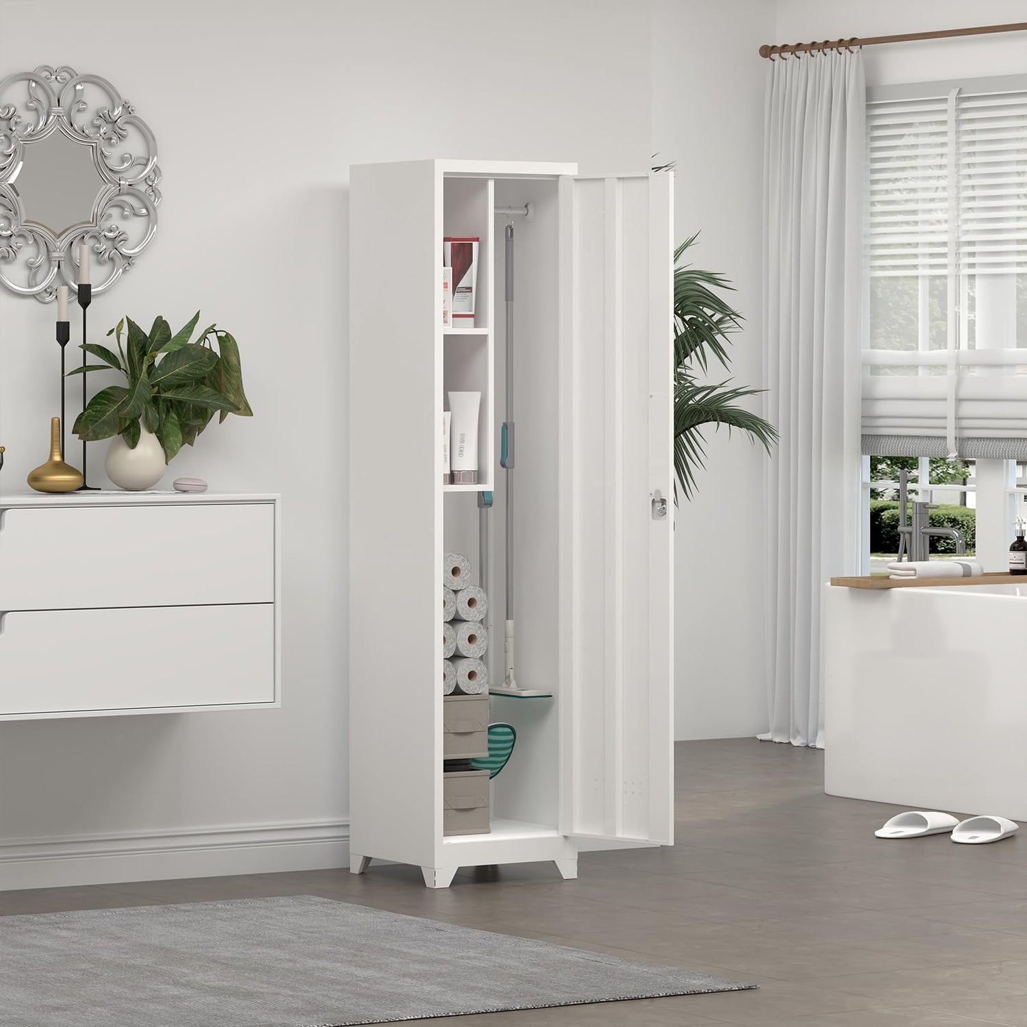 STEELIST Slim Broom Storage Cabinets, Metal Cabinet with Shelves and Hanging Rod, 65" Utility Storage Cabinet with Locking Door, Tall Cleaning Cabinets for Kitchen, Pantry, Office, Shop, Garage