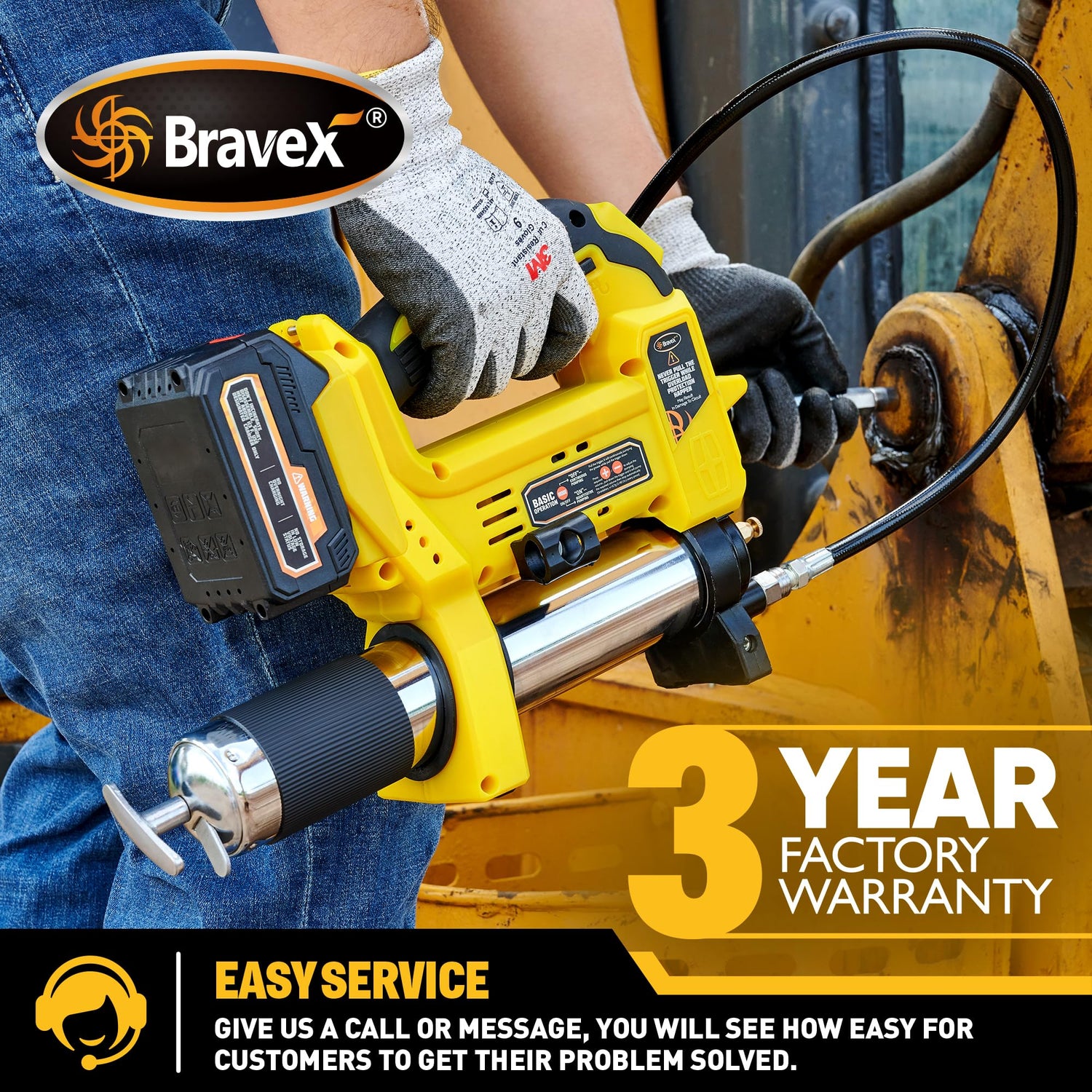 - 【Battery grease gun】Pumping speed up to 5.0 oz/min for high-flow applications. Package: 40 inch Heavy Duty Reinforced Flex Hose with Spring Guard and coupler, and a 5-1/2 hard metal extension tube with sharp nozzle.