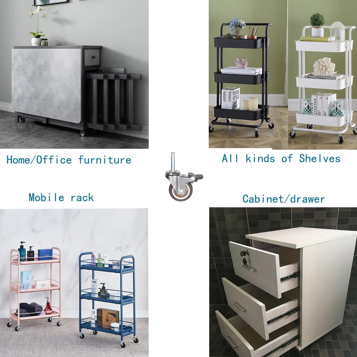 • WIDELY APPLICATION -- Castor wheels are widely used for Carts, Furniture, Dolly, Workbench, Trolley, Flower pot holder, Locker, Shelf etc. The casters will help you move your furniture much more easier and create a simple convenient life!