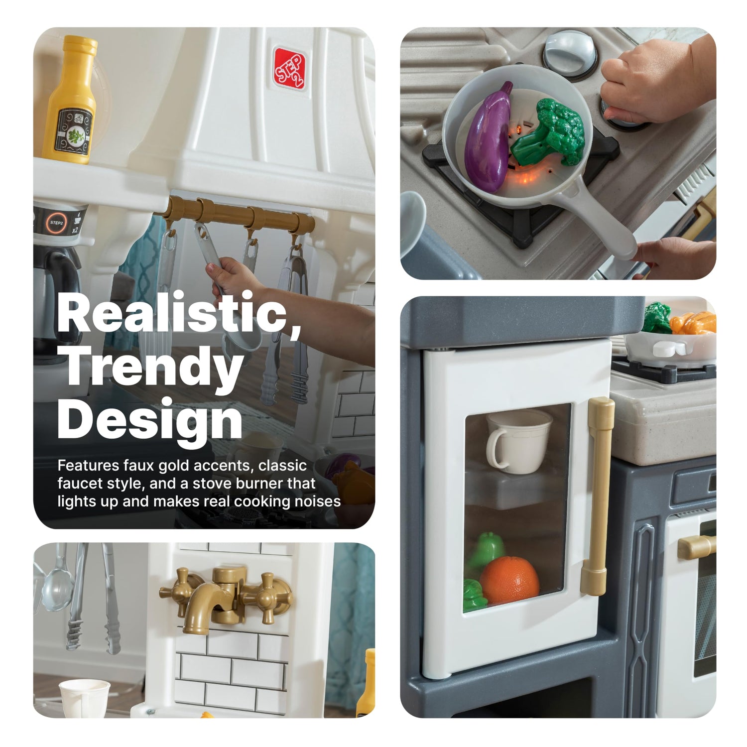 Step2 Gilded Gourmet Kids Kitchen Playset, Indoor/Outdoor Kitchenette, Interactive Play with Lights and Sounds, Made of Durable Plastic, Includes 20 Piece Toy Accessories, for Toddlers 2+ Years Old