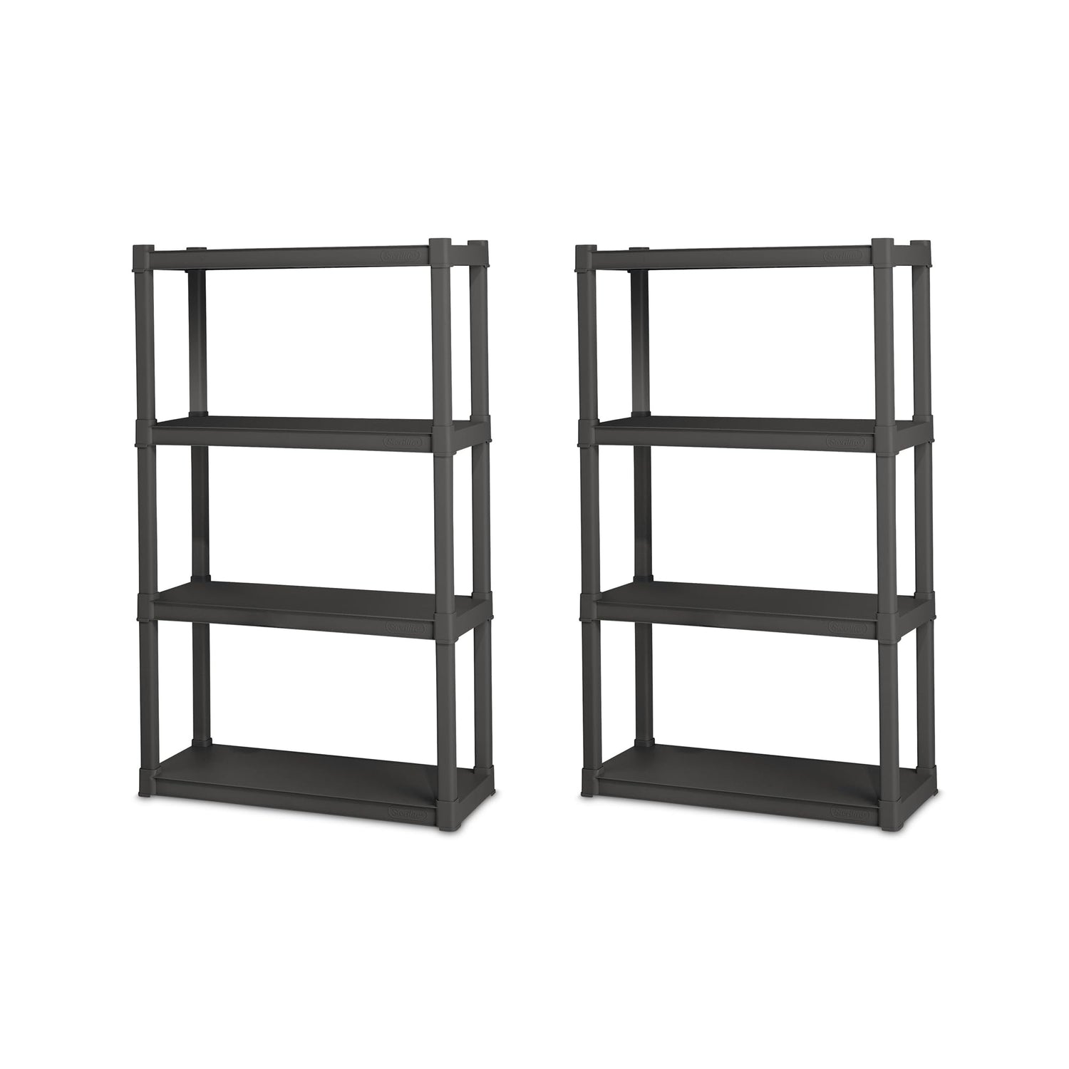 Sterilite 2-Pack 4 Shelf Unit, Heavy-Duty Shelving Storage and Utility Rack - Standing Plastic Organizer Shelves for Kitchen, Bathroom, and Garage