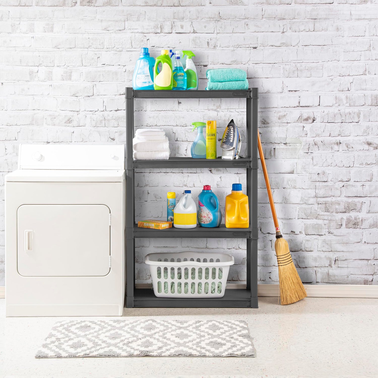 - Heavy-Duty Construction: Built with sturdy plastic shelves, this unit supports heavy loads of storage per shelf, making it ideal for garages, laundry rooms, or pantries.