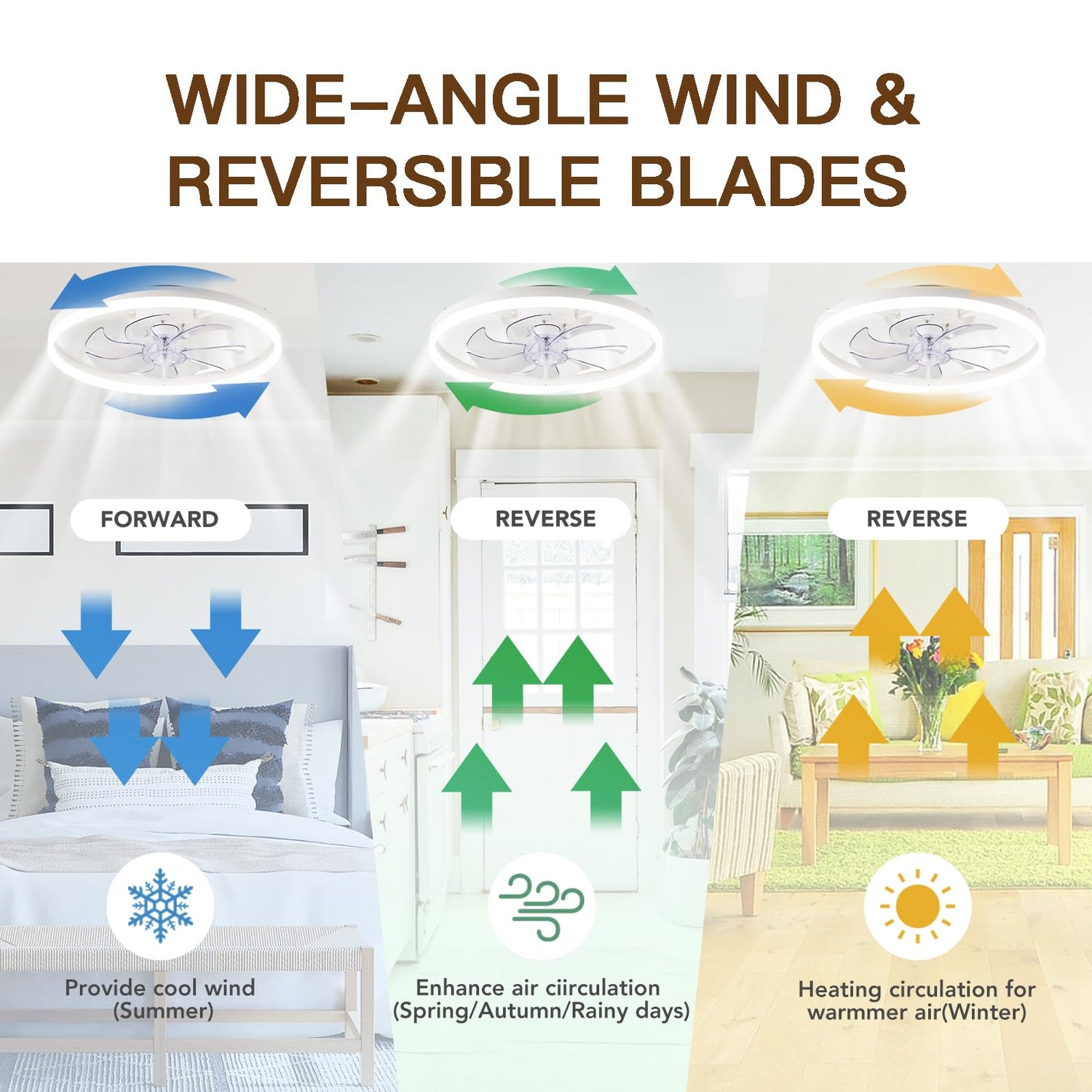 - Smart Memory Function : The flush mount ceiling fans with lights and remote will retain your setting of brightness or color temperature. When you turn off the bladeless ceiling fan light with the remote control, the settings will keep the same when you turn it on next time with the remote control. The light and lamp also work independently to meet your different needs, getting the ideal comfort.