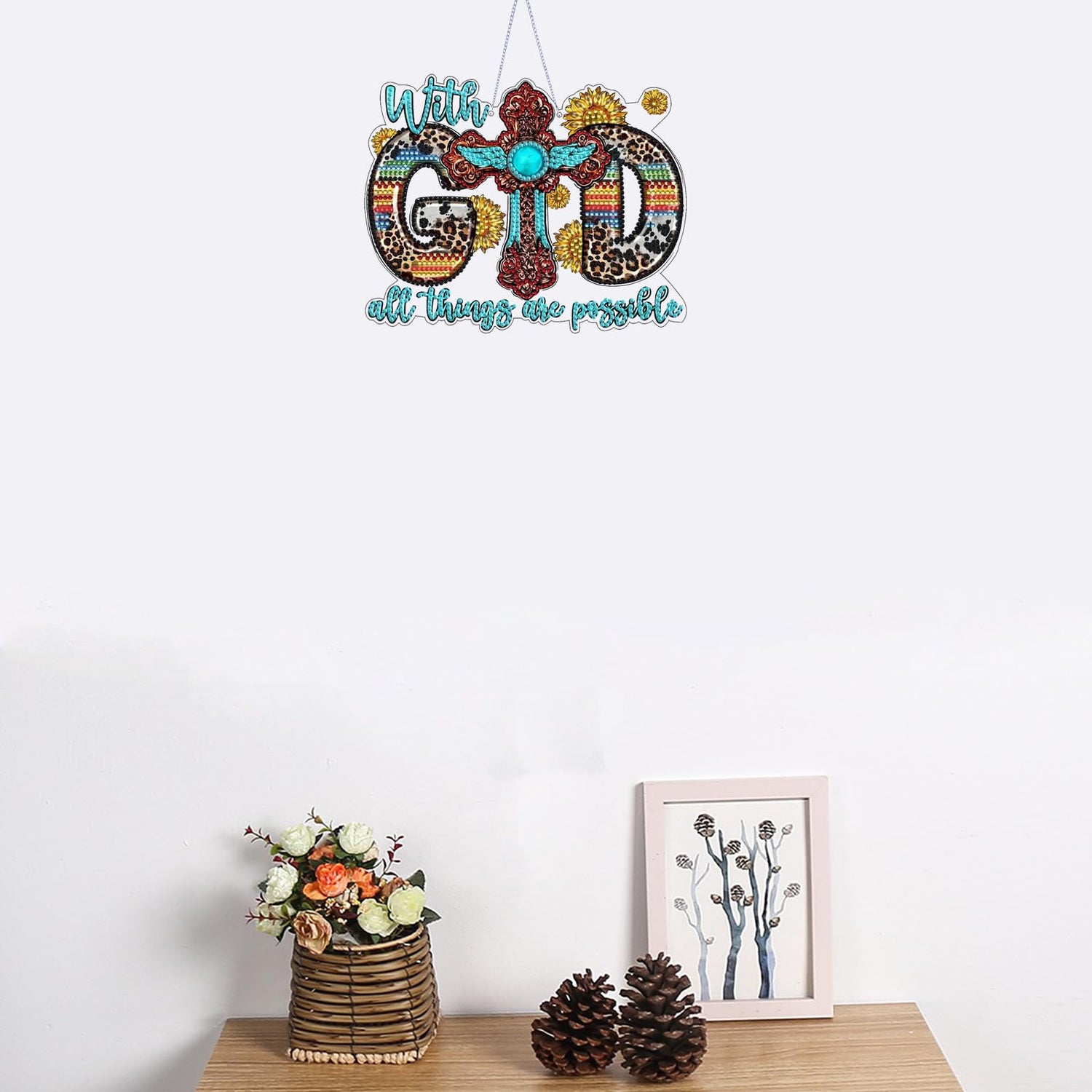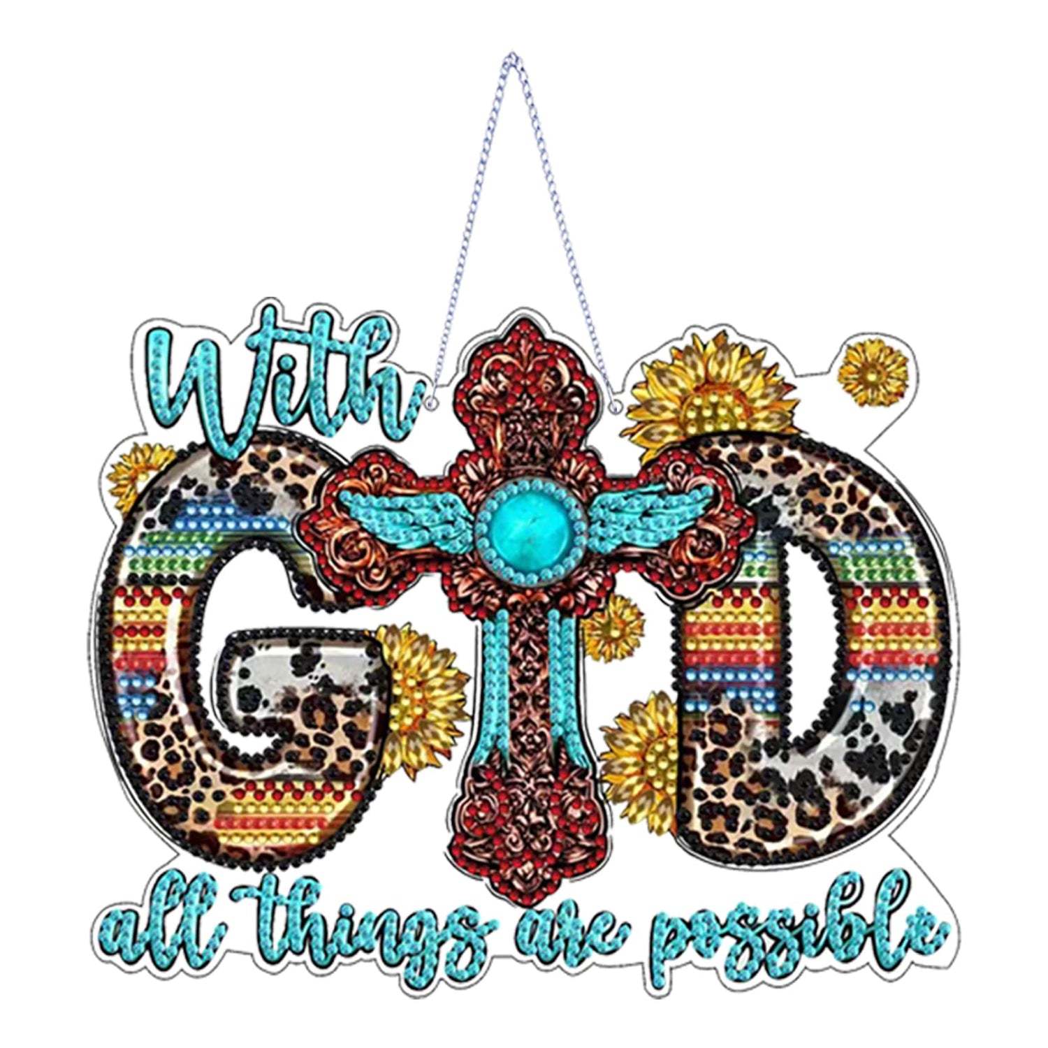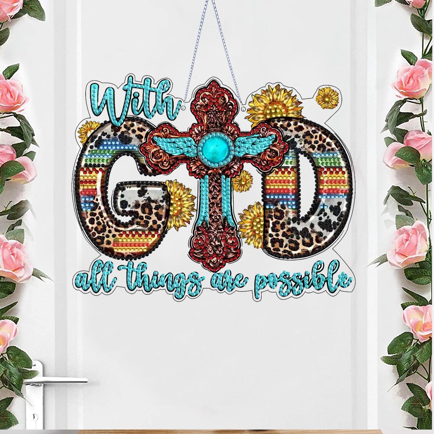 STGLCR Cross Diamond Art Hanging Kit for Adult,Special Shaped Rhinestone,DIY Acrylic God 5D Diamond Art Painting Window Pendants Home Garden Wall Hanging Kits Hanging Ornament 7.8inch