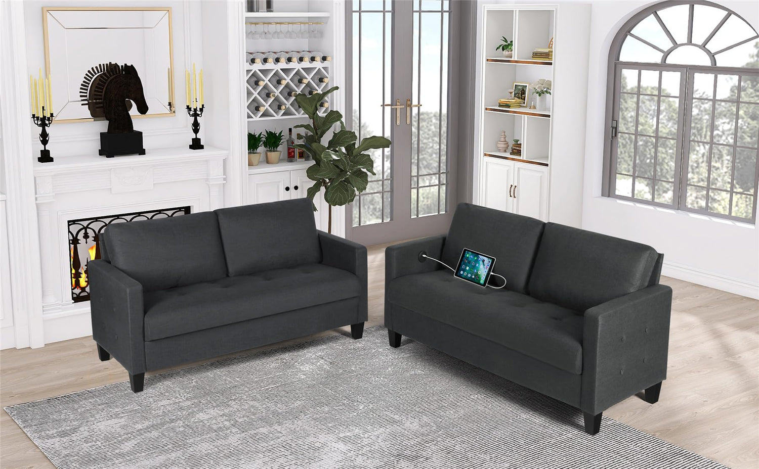 - 【New Design】We increased 2pcs USB charging ports on the one side of the armrest, which can provide long-term power so that you can play games and watch videos on it. Place it inside the armrest of the 2 Seater Sofa and it will not destroy the beauty of the whole loveseat sofa.