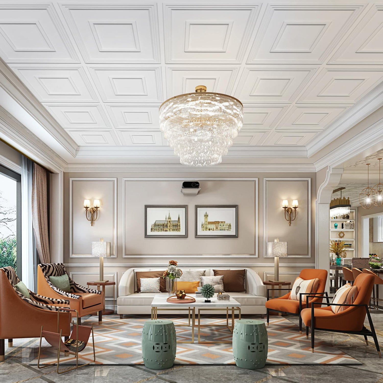 - 【MULTIPURPOSE】These elegant 3D deeply grooved designs are the perfect DIY project for ceiling or wall decorations, whether to cover the old ceiling tiles or add some visual interest and texture to the room