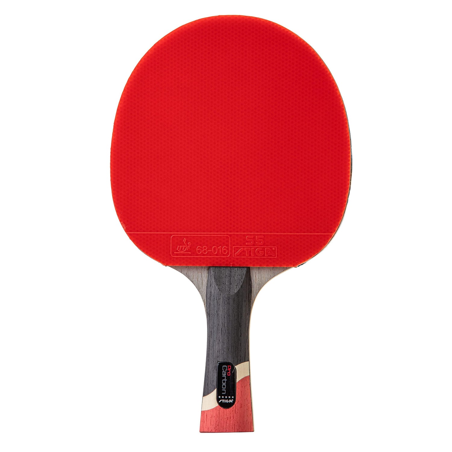 Details: The STIGA ProCarbon is a perfect blend of cutting-edge technologies and advanced materials. The ProCarbon will allow you to experience the extreme power and spin found in rackets of the top players around the world. This performance-level table tennis racket features ITTF approved rubber for tournament play with performance ratings of Speed: 99, Spin: 100, and Control: 80. The ProCarbon features a 7-ply extra light blade with S5 rubber and 2mm sponge. The Carbon Technology creates power and speed and the ACS Technology increases control. STIGA – Play the best!