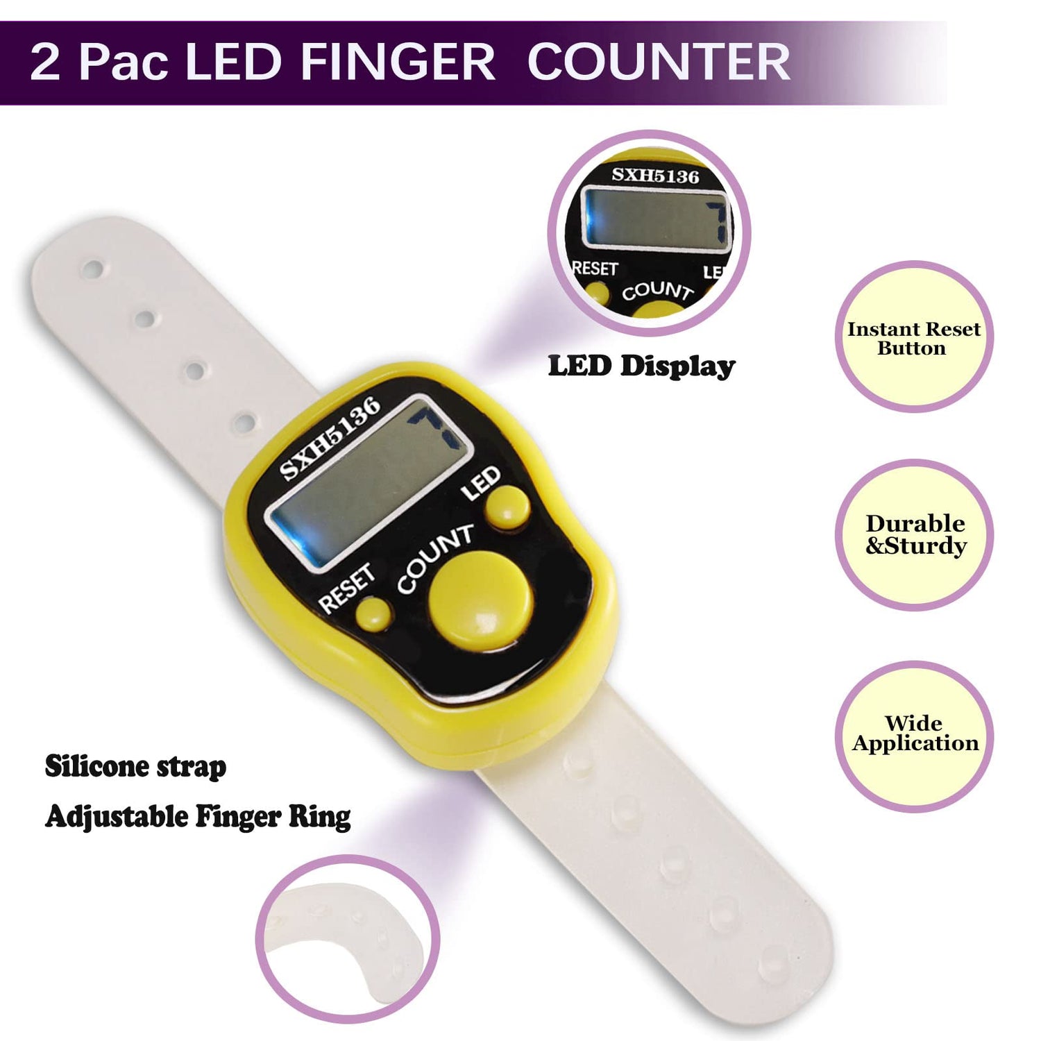 - 【Finger Counter】2 pcs finger counters are the most handy, must-have product for any knitter or crocheter. These cute digital ring row counters have an adjustable strap to fit around your thumb or finger. Press the main button each time you finish a row to keep track of your progress. The smaller button resets the count back to 0.