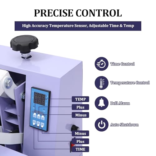 - 【Manual Heat Press Control Panel】 Designed with a simple single-display control, this manual heat press machine allows easy temperature and time adjustment without complex settings. Clear readouts help beginners achieve consistent heat transfer results with less setup time