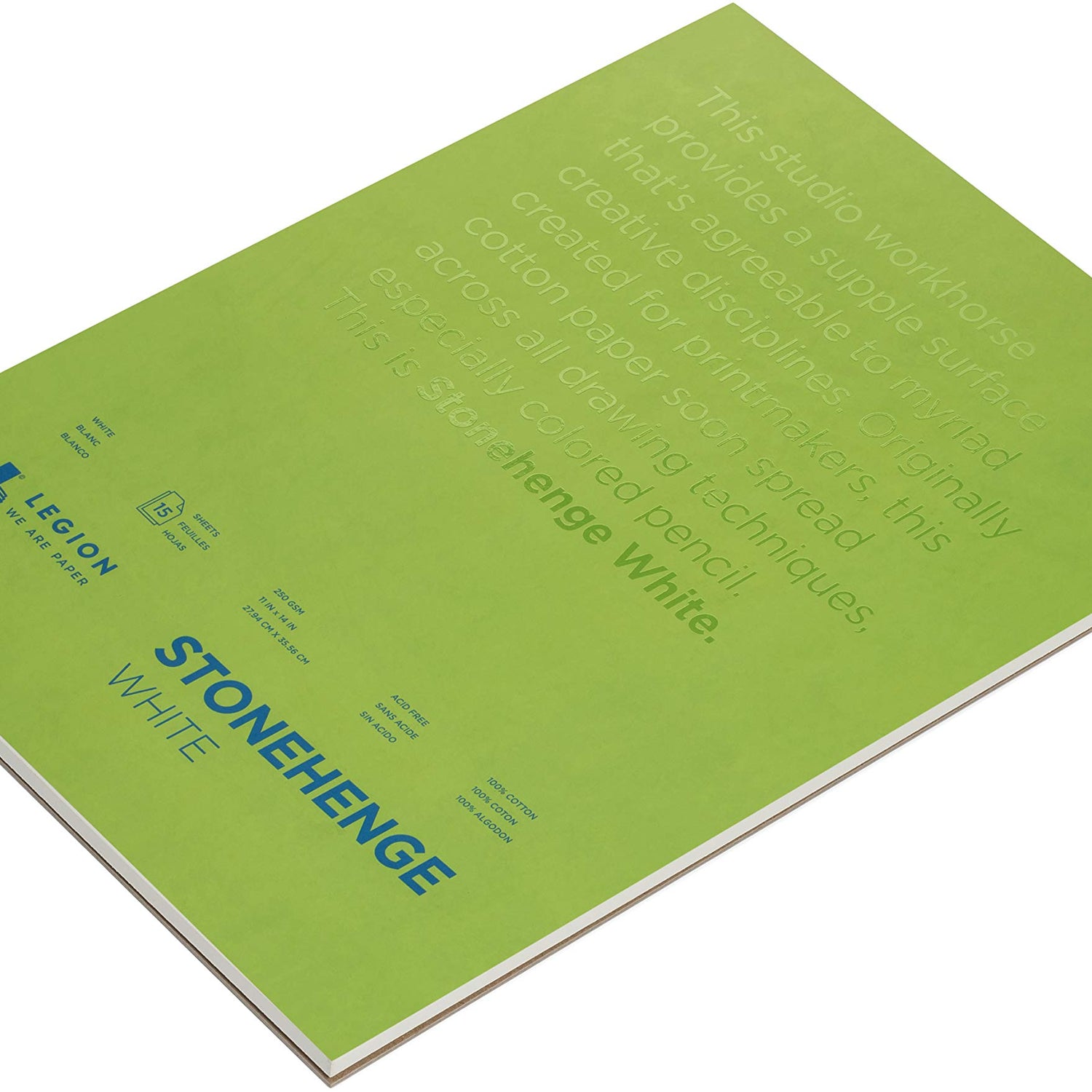 Details: This Stonehenge pad measures 11 by 14 inches and includes 15 sheets of pure white 100 percent cotton paper that is acid-free and pH neutral. Designed for students and professionals alike this versatile paper is great for printmaking, etching, silkscreen, pencil, pastel, watercolor and various other fine art applications. Stonehenge is a high quality, archival paper that is cost-efficient. Made in the USA. 250 gsm.