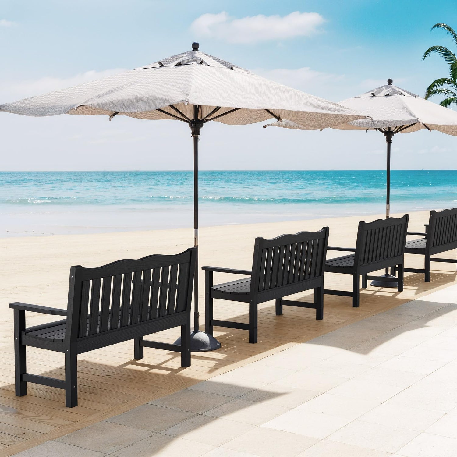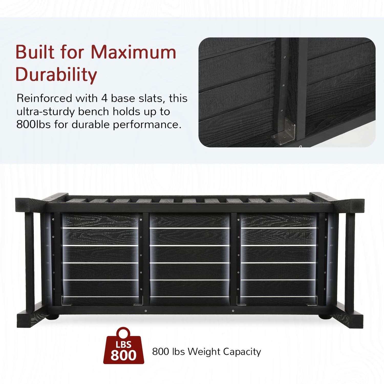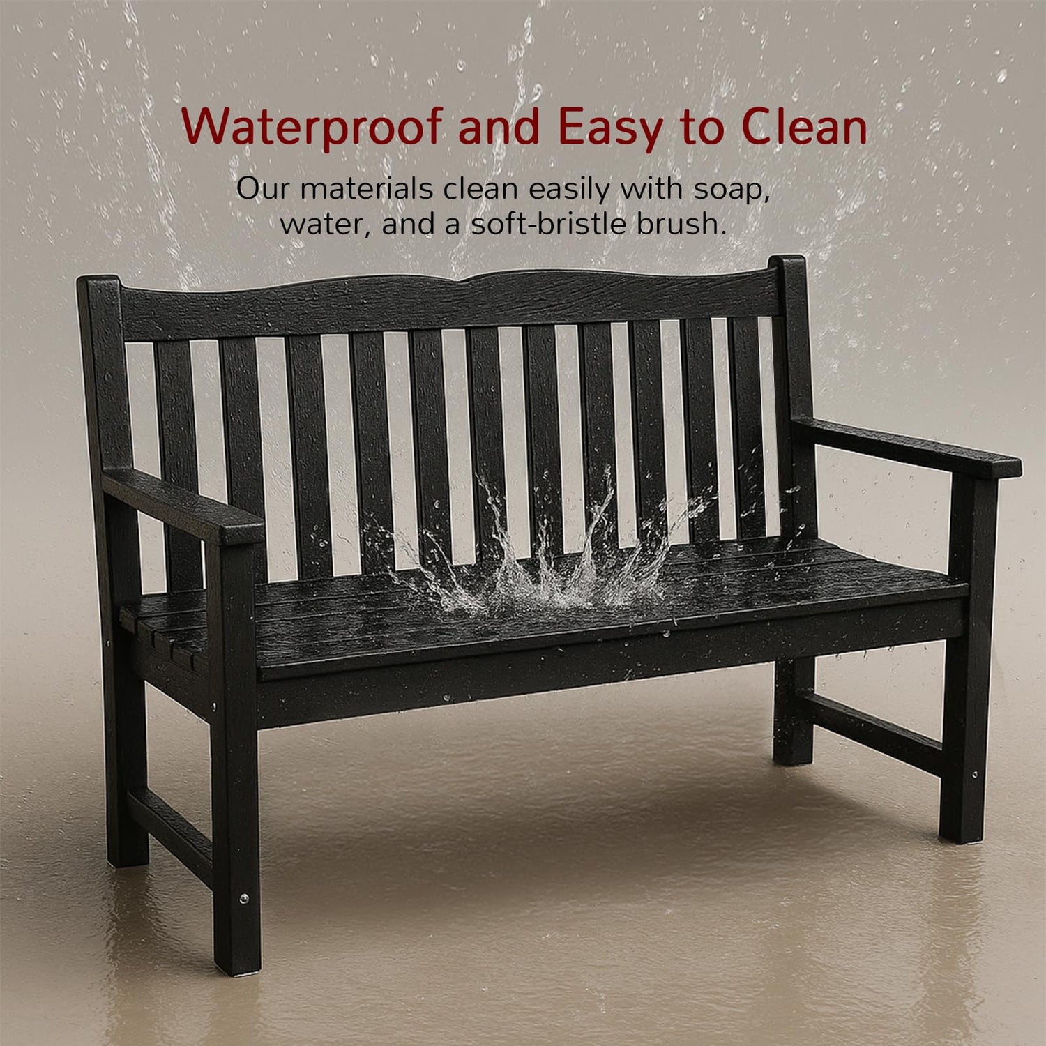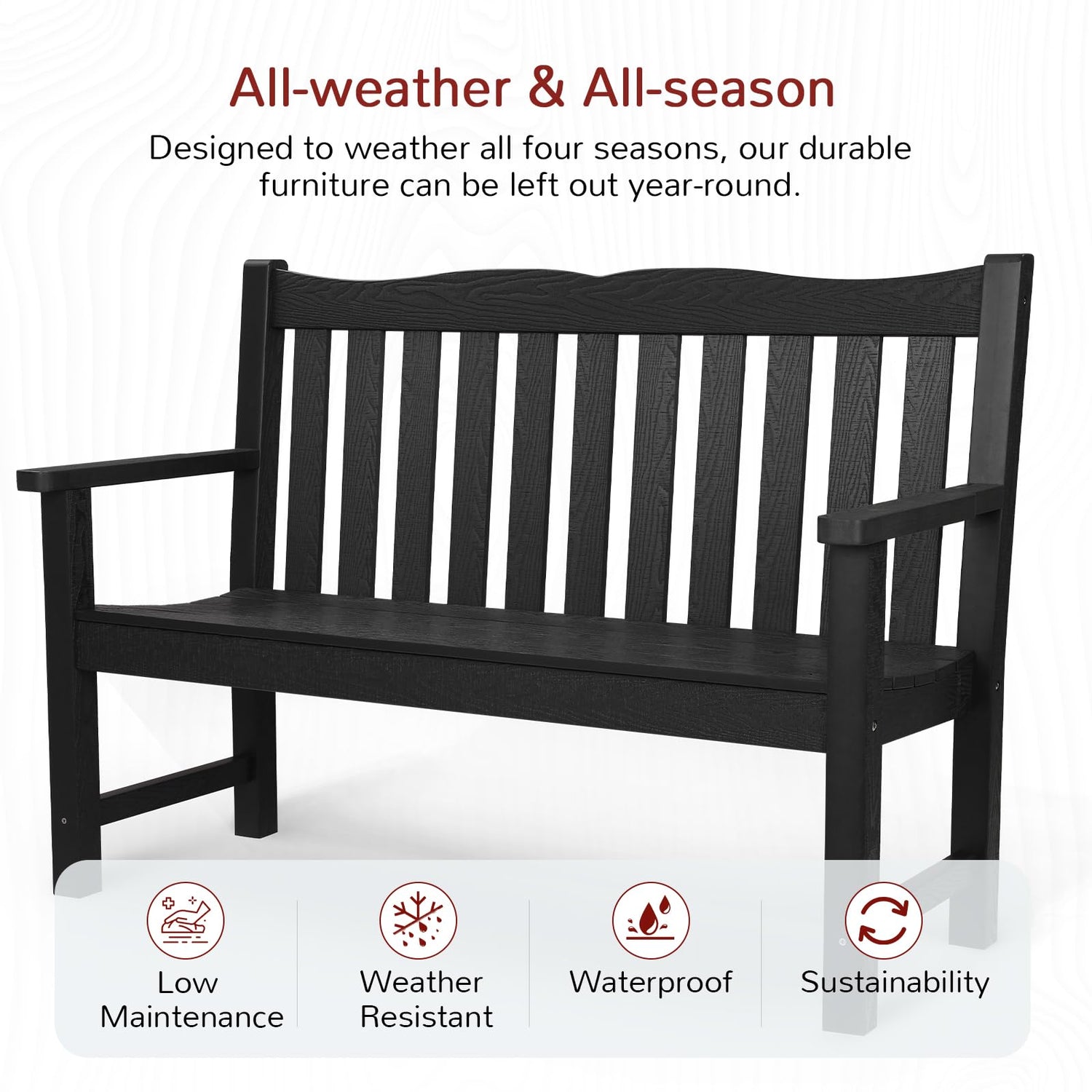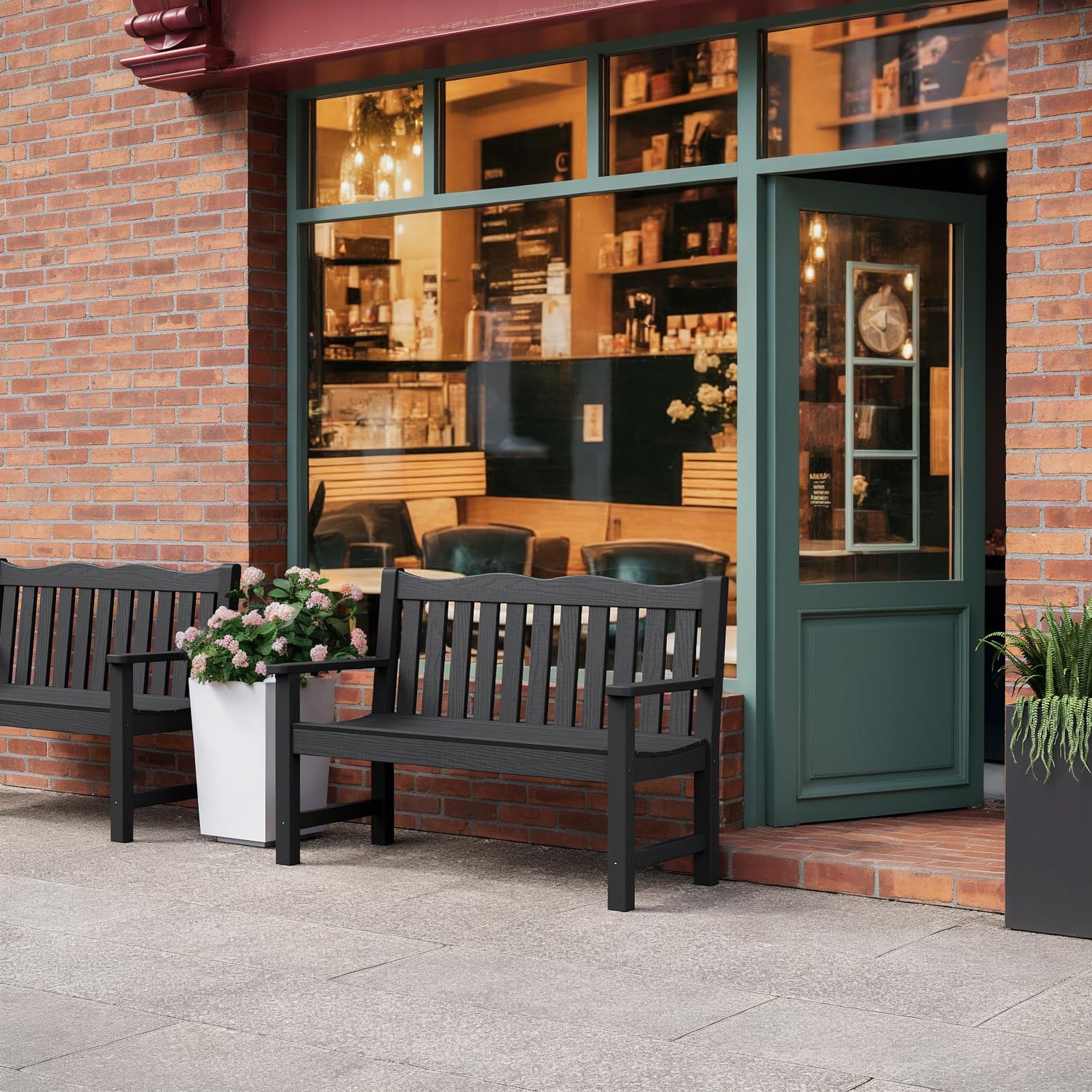 Stoog Outdoor Bench, 2-Person Garden Benches for Outdoors, All-Weather HIPS Garden Bench with 800 lbs Weight Capacity, Never Rot or Fade, for Garden, Porch, Backyard and Park, Black