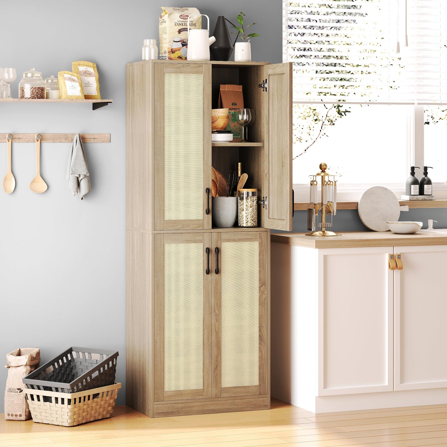 - 【Sturdy Structure】This Kitchen Pantry Cabinet is Made of High-Quality MDF Board which Make Sure the Durability as well as Superior Stability, The Tall Cabinet Come with Anti-tip Devices Provide a Safe Environment for Your Family, The Rattan Cabinet not only Store Your Items, also is a Nice Addition as a Home Decor