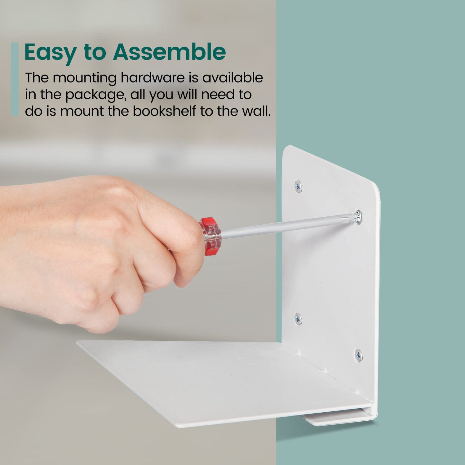 STORAGE MANIAC Floating Book Shelves for Wall Mounted Invisible Floating Bookshelves Heavy-Duty Steel Hidden Bookshelf Hanging Bookshelves for Bedroom Living Room Office, White 4-Pack Large