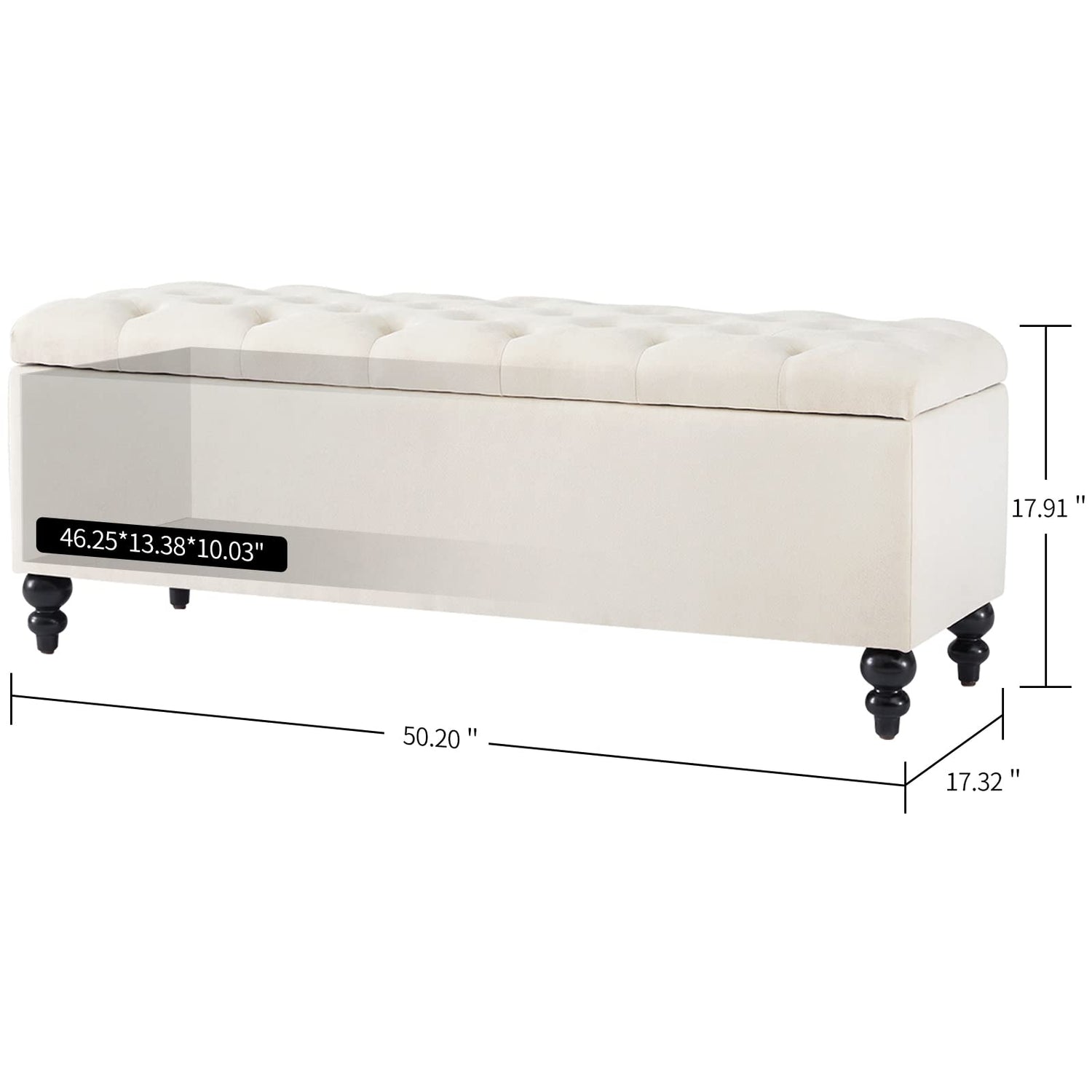 - 【APPLICABLE TO MANY SCENARIOS】This storage ottoman measures 50.20"L*17.32"W*17.52"H.Perfect for a variety of scenarios.This bedroom ottoman can be used as an extra seat when you put on your shoes,as a storage bench ,and also provides a large storage space to store almost any level of furniture and hold a ton of stuff, like dolls,clothes,out of season quilt,and other miscellaneous items,restoring beauty and tidy to your home.