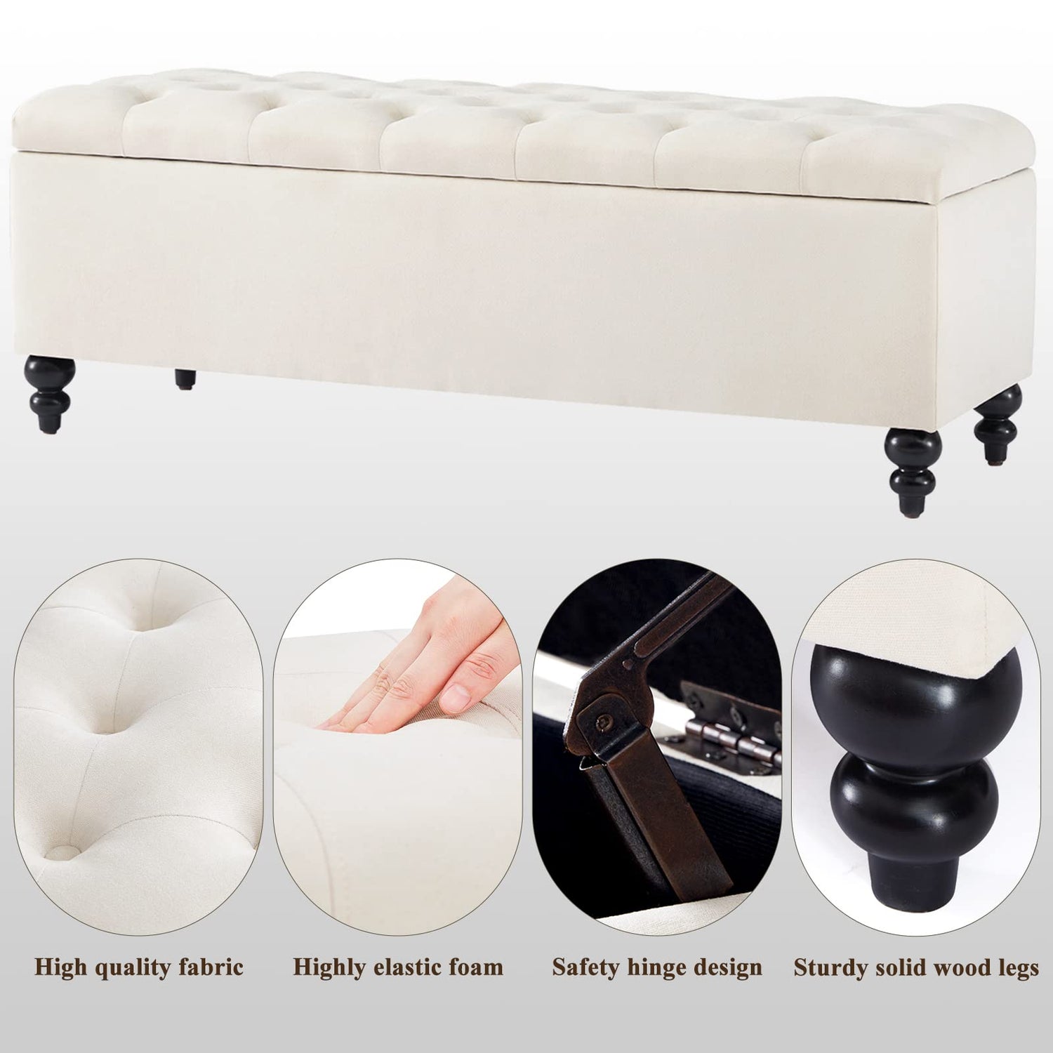 Storage Ottoman 50.2 Inches Upholstered Fabric Storage Ottoman Bench,Button Tufted Ottoman with Storage for Living Room,Bedroom End of Bed Bench Withstands 304lbs (Ivory)