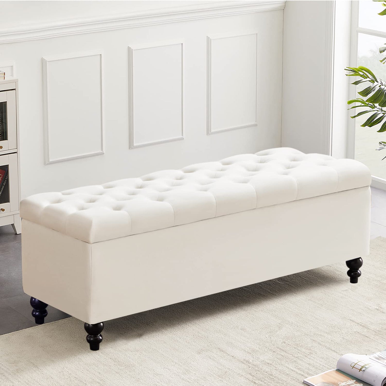 - 【ELABORATELY-DESIGNED】In addition to its actual function,our bench with storage can also meet your decorative needs no matter where you choose to place it. Rectangular frame and button-tufted design,neat stitches demonstrates our ottoman storage a simple style.Through adding your bedroom, living room, study room,entrance,staircase an extra touch of sophistication to bring you more comfort.