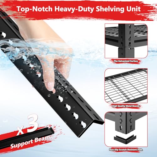 1. 3300LBS Heavy Duty Storage Shelves, each layer can withstand a weight of 660 pounds, with a total bearing capacity of 3300 pounds, perfect for organizing all sorts of items in your garage, kitchen, or laundry room
