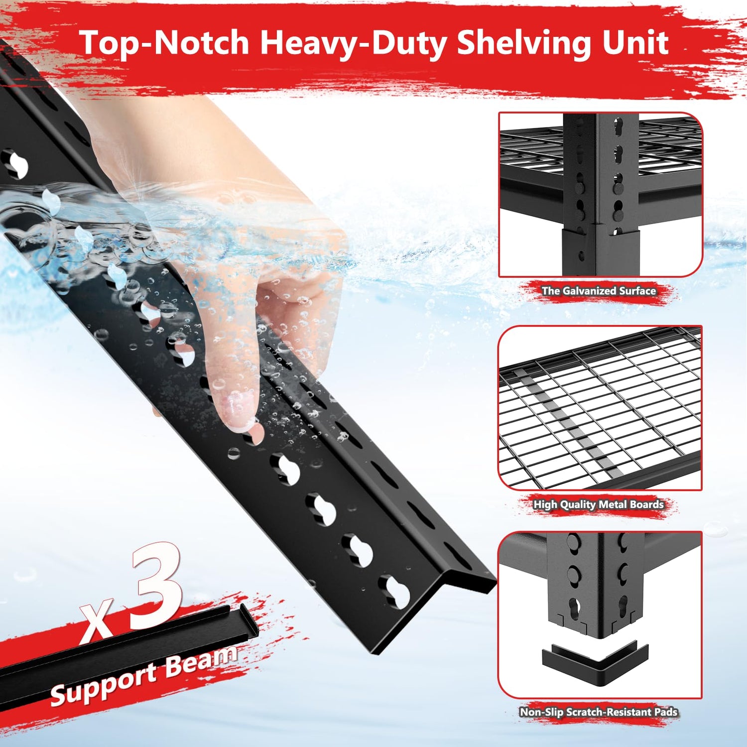 1. 3300LBS Heavy Duty Storage Shelves, each layer can withstand a weight of 660 pounds, with a total bearing capacity of 3300 pounds, perfect for organizing all sorts of items in your garage, kitchen, or laundry room