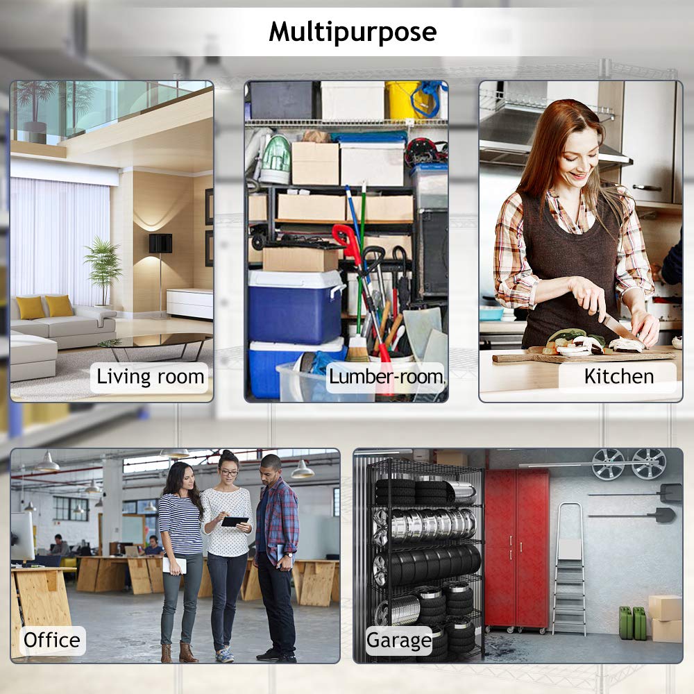 - ✔【MULTIFUNCTIONAL】This garage shelving is suitable for a wide range of applications. You can use this storage shelves in a variety of places, such as the bathroom kitchen office garage. You can adjust the height of the storage shelves according to the size of the item. The spacing of each layer of this metal shelf can be adjusted. Shelves of the wire shelving unit are adjustable height at 1" increments. Wire shelving unit storage shelves garage shelving