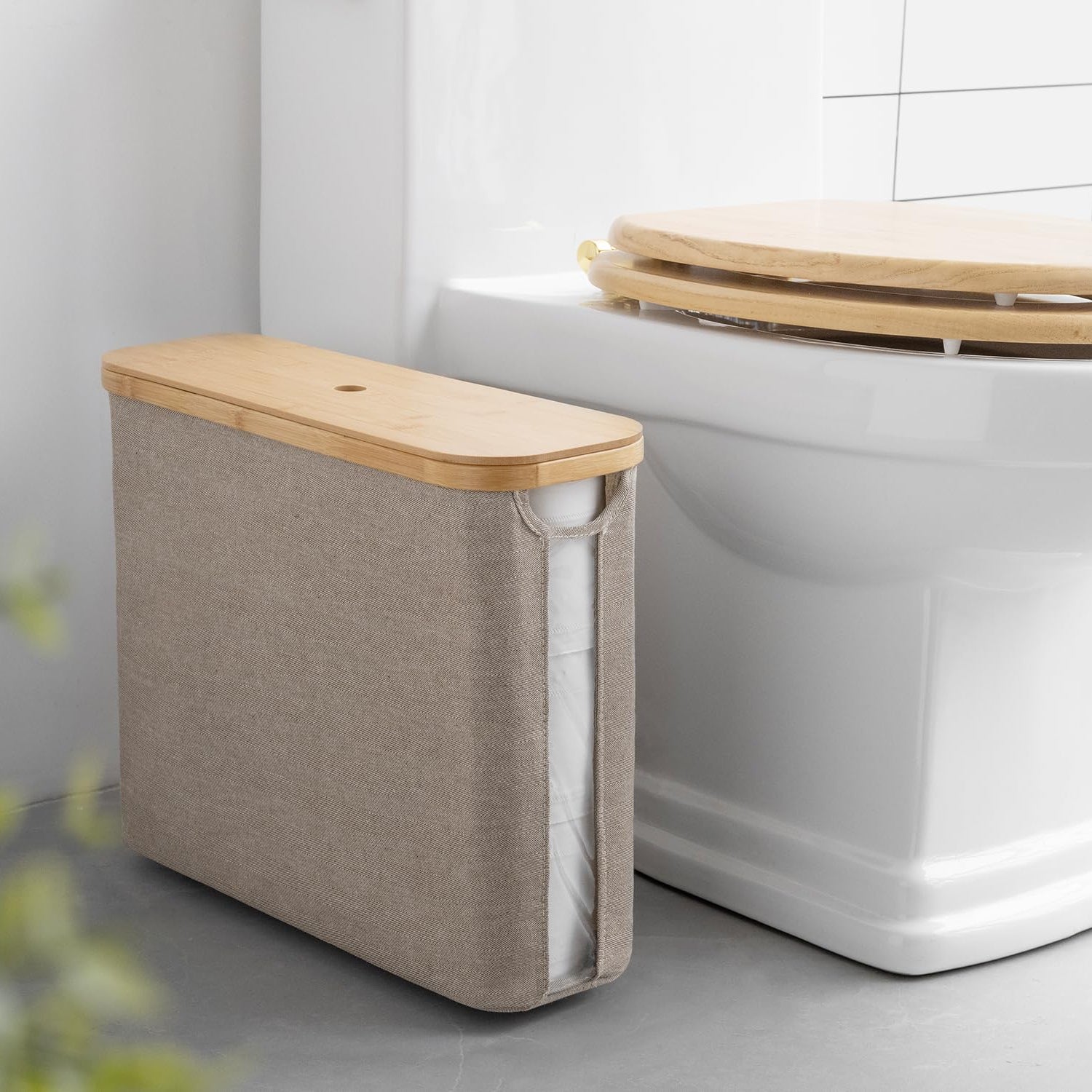 - Premium Material: Made of high-quality fabric, this toilet paper organizer can endure a long-term use even in a damp bathroom. Due to the natural fabric, the storage bin may have wrinkles after unfolding which can be ironed and eliminated.