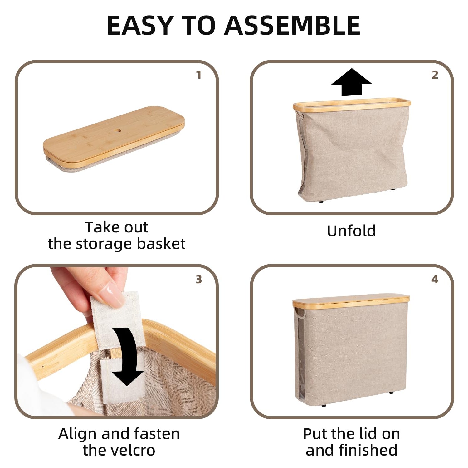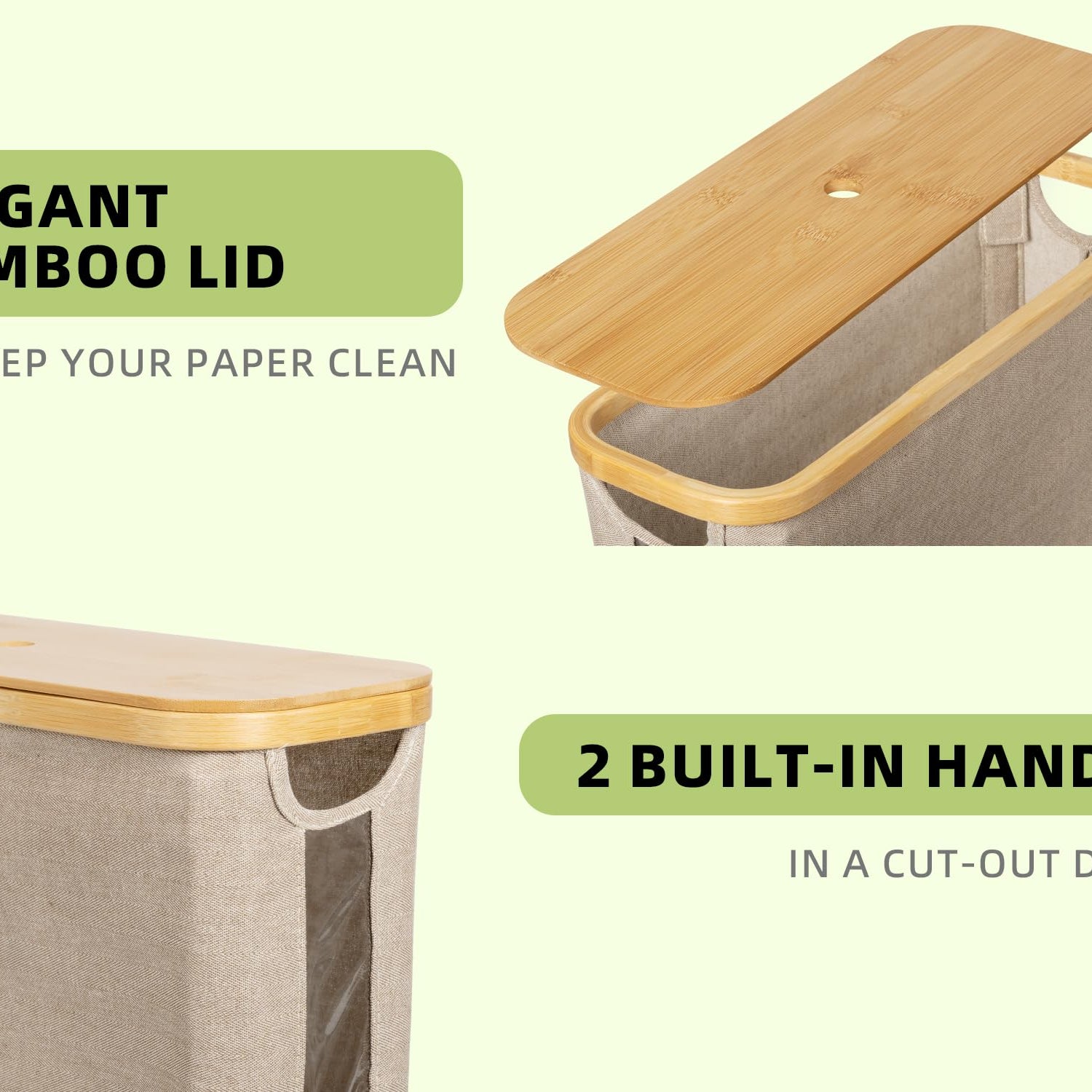 - Foldable for Space-Saving Storage: The toilet paper holder features a stable bamboo frame with thick cloth material, designed for compact storage and space-saving functionality. It is easy to assemble and comes with four bamboo support rods for stability and can be folded for storage when not in use.