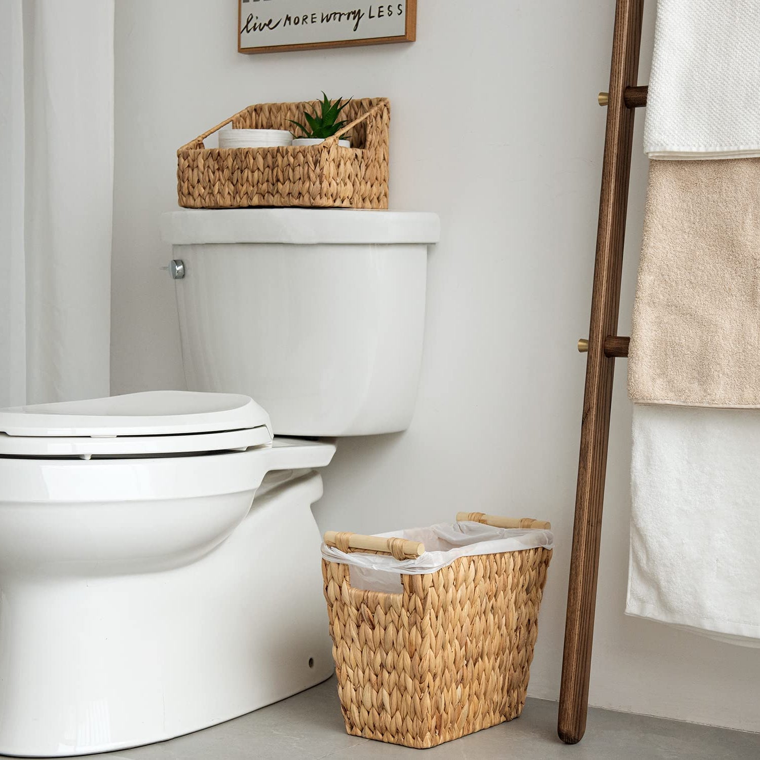 StorageWorks Wicker Waste Basket with Wooden Handles, Bathroom Trash Can, Wicker Trash Can for Bedroom, Office, Living Room, 12 Liters, 1 Pack