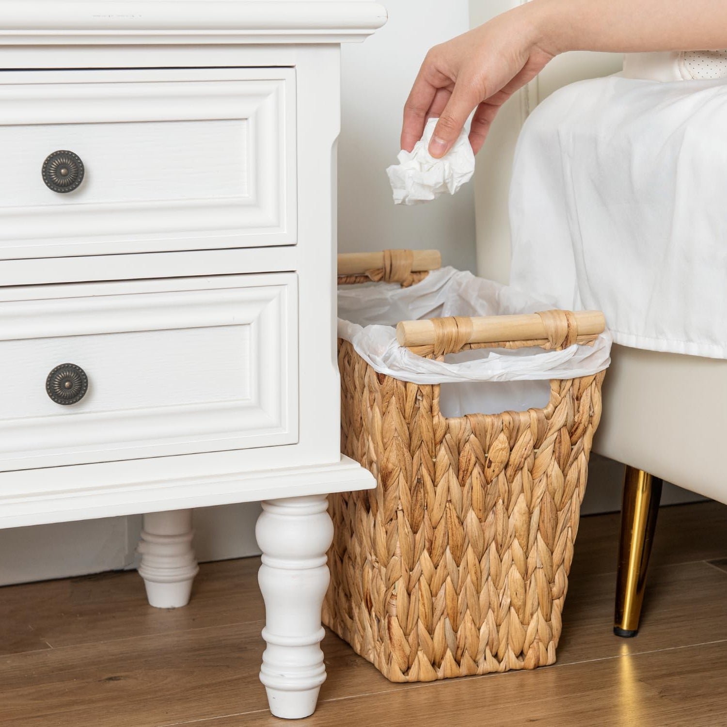 - The versatile handwoven garbage bin is also ideal for gathering newspapers, toys, magazines, etc.