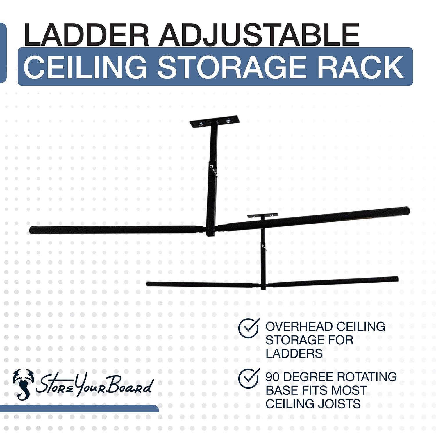 StoreYourBoard Adjustable Overhead Ladder Rack – Garage Organizer Ladder Shelf for Step & Extension Ladders - Storage Racks and Shelving for Garage Organization - Ceiling Mounted - Holds 150 lbs