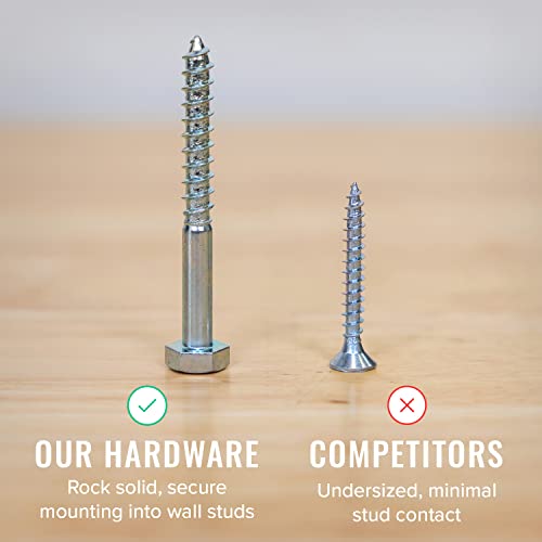 - EASY INSTALL: Garage tool organizer wall mount arrives fully assembled. Simply mount it to your wall using the 3 provided lag screws. Designed to secure to standard wall studs spaced 16" apart.