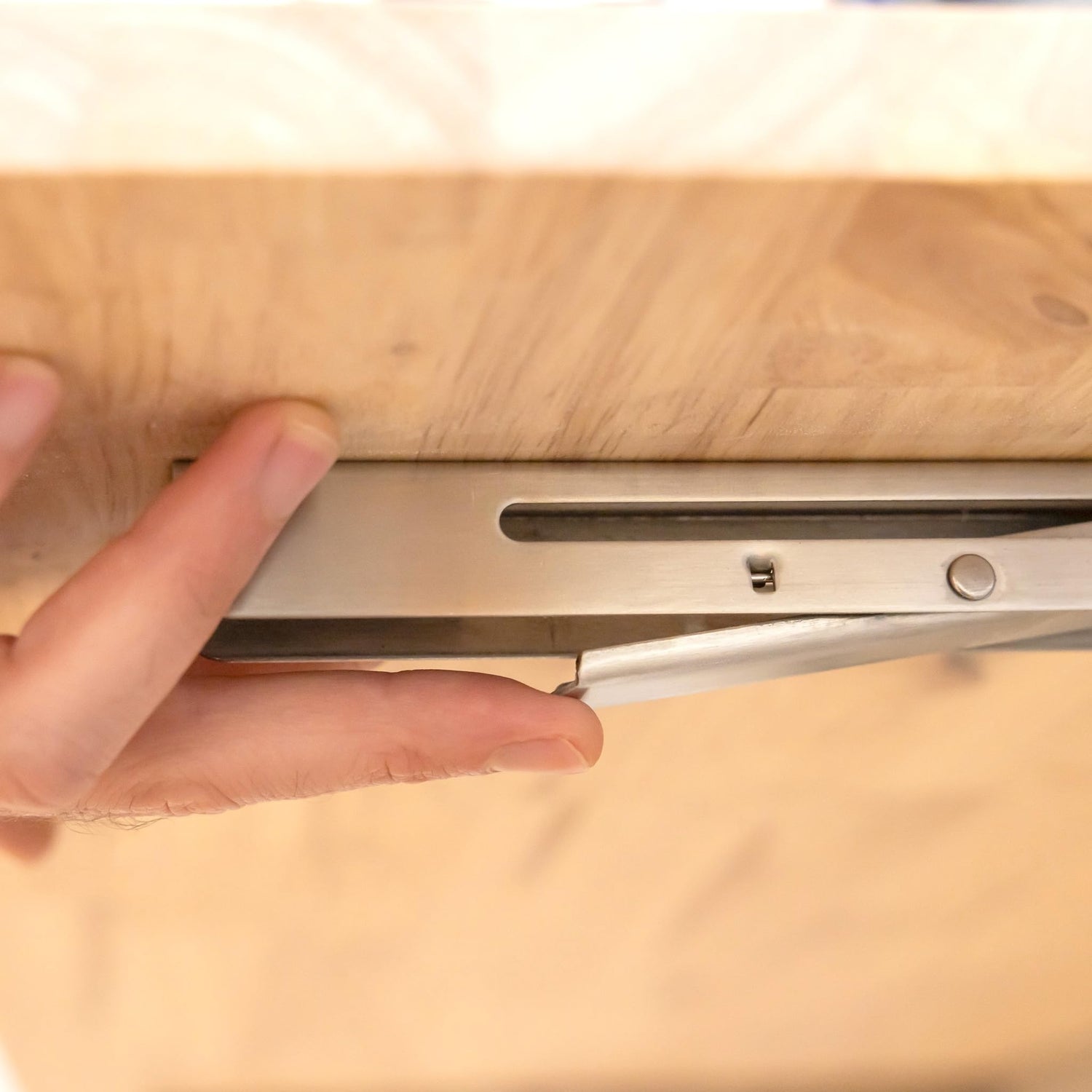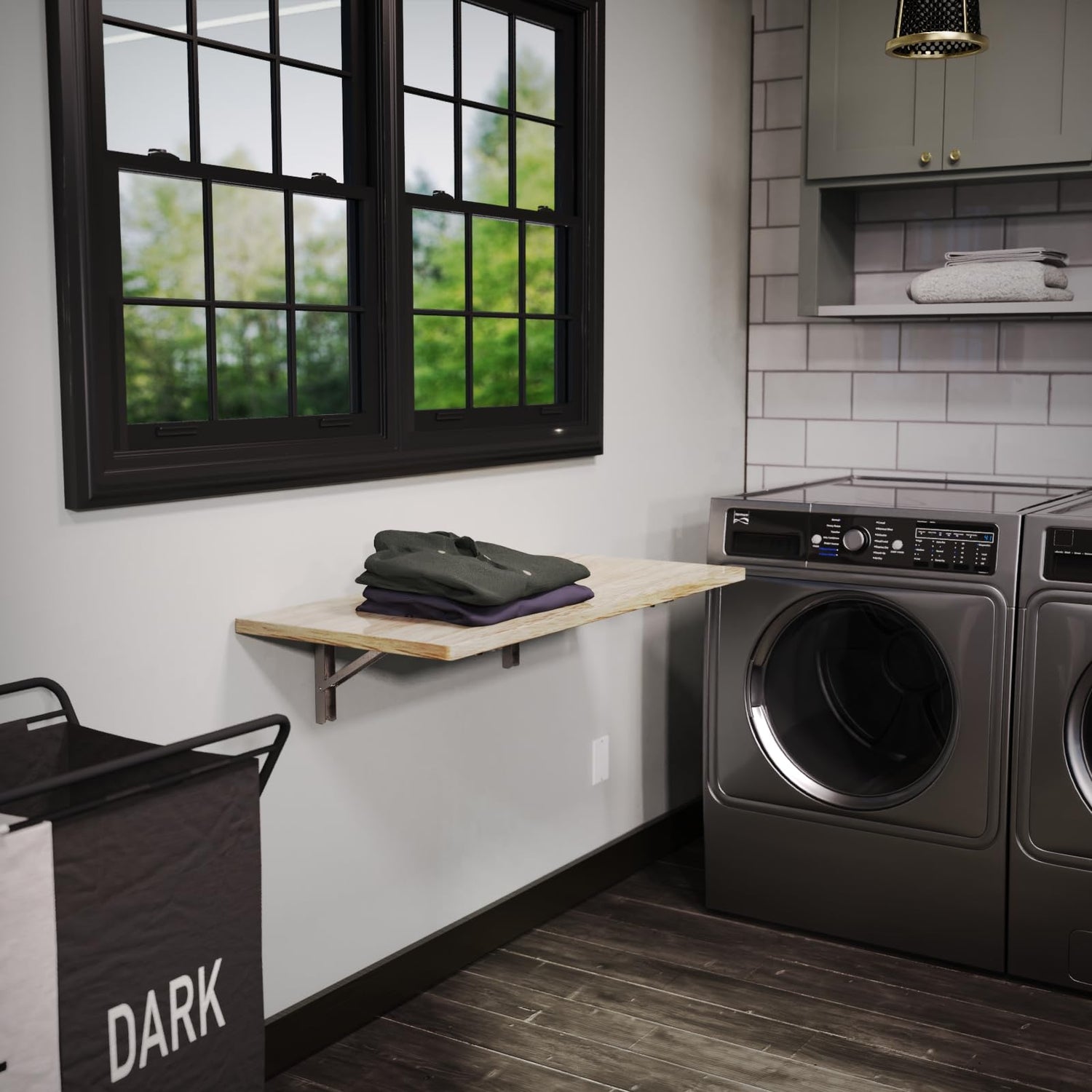 - Low-Profile Brackers: Stainless steel folding wall brackets support up to 200 lbs for a rock-solid wall-mounted table with a height of only 7 inches. The folding workbench brackets easily release by pressing the tabs, locking securely in place once lifted into position.