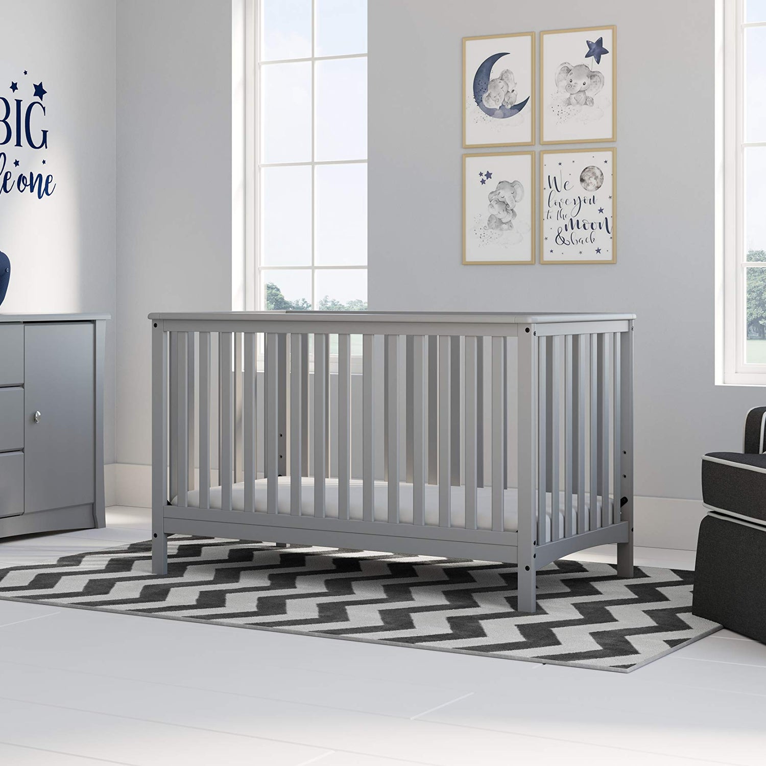 - ADAPTS TO YOUR GROWING BABY: Equipped with an adjustable mattress support base with 4 different height options; Designed to fit any standard full-size crib & toddler mattress (mattress sold separately); Backed by a 1-year limited manufacturer’s warranty
