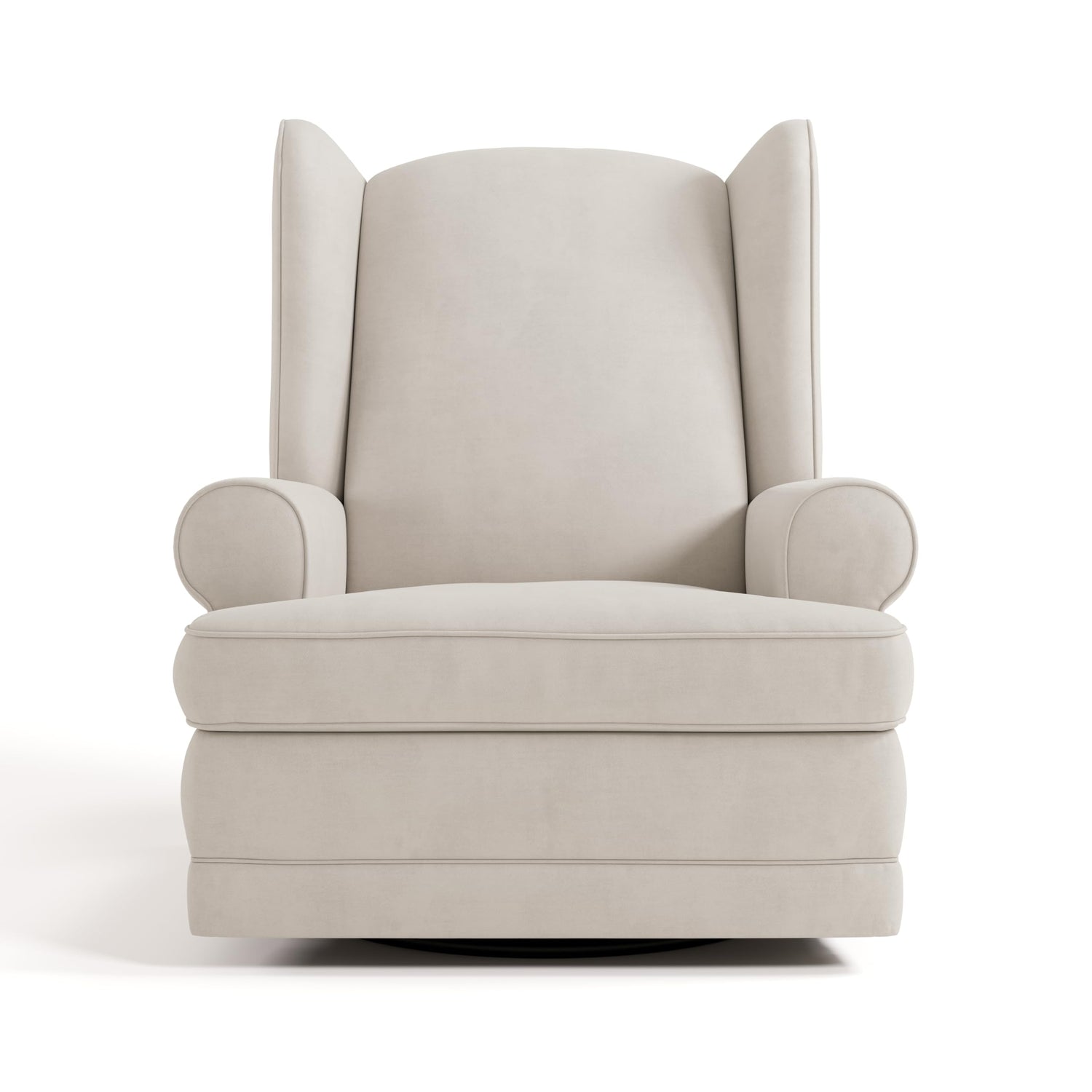 Details: The Storkcraft Serenity Wingback Upholstered Reclining Glider with USB Charging Port is a classically proportioned reclining nursery glider chair with a durable metal 360-degree swivel base, handsome wingback details, and gentle, seamless "glide and recline" functionality to provide families with years of comfort and enjoyment. Designed for today's modern parent, the Storkcraft Serenity Wingback Upholstered Glider has a USB charging port with 2 charging slots to keep your smartphone, tablet computer, or e-reader charged in the nursery. Plush, cushioned and supportive, the durable upholstered Storkcraft Serenity was designed for ultimate nursery comfort, and as a cozy nest for parents and baby to enjoy calmness and serenity. Upholstered in durable yet comfortable water-repellant, eco-friendly fabric, the Storkcraft Serenity is able to recline backwards and its leg support can kick up for further comfort. Stay calm knowing that the Storkcraft Serenity is backed by a 1-year limited warranty, and Storkcraft's supportive customer care. Exclusively from Storkcraft, proud 2020 & 2021 Women's Choice Award Winner for 9 out of 10 Customer Recommended Baby & Kids Furniture.