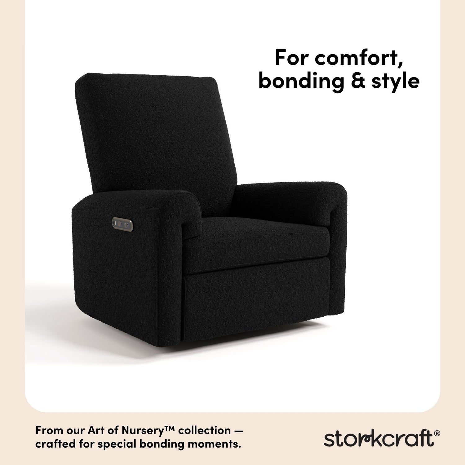 Storkcraft Sorrento Deluxe Power Recliner Swivel Glider (Black Boucle) – Premium Electronic Power Recliner for Nursery, Includes Dual-USB Charging Port with USB-A & USB-C, Nursery Glider Rocking Chair