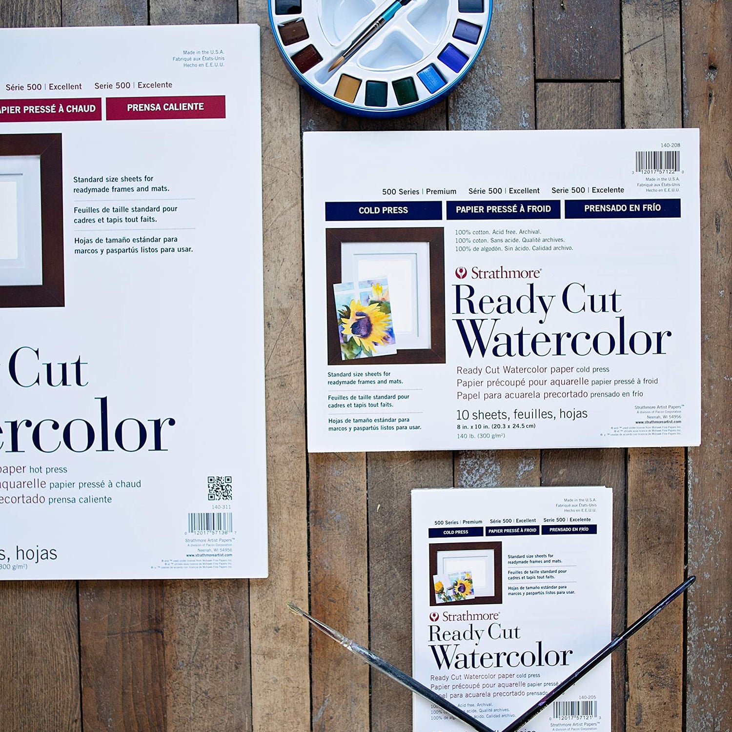 Details: The Strathmore 500 Series Ready Cut Watercolor Cold Press Papers are standard sized sheets for ready-made frames and mats perfect for your watercolor creations. Saving you time and money and making framing easier and less expensive, these standard size sheets are ideal for intermediate to advanced watercolorists. The Strathmore 500 Series Ready Cut Watercolor Cold Press Papers utilize a harder size and surface strength to provide greater water hold-out, improved color lifting, and blending. This paper is 100% Cotton, acid free, and archival.