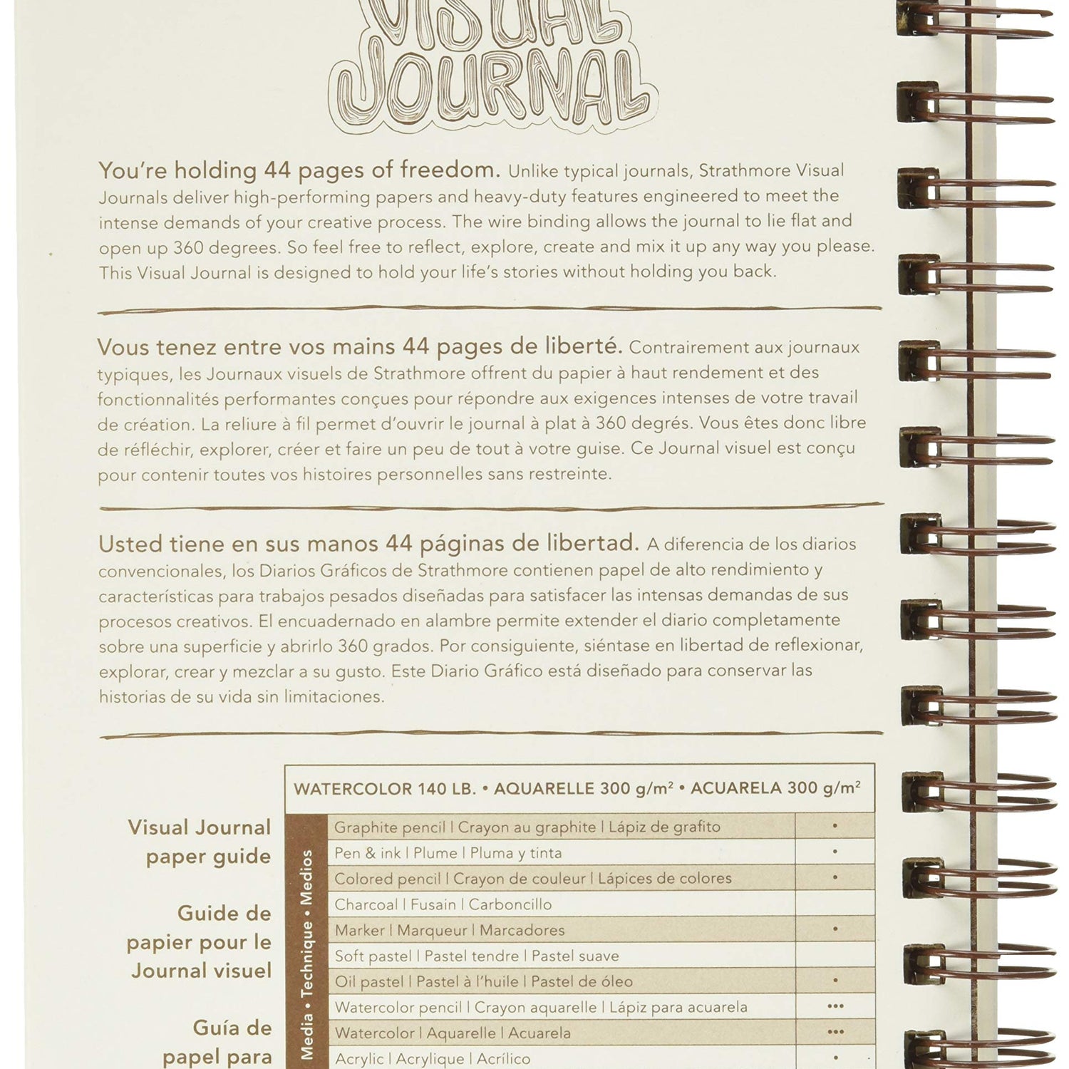 Details: Freedom of Expression. New StrathmoreÂVisual Journals deliver high-performing papers and heavy-duty features engineered to meet the intense demands of your creative process. The removable cover sheet reveals a subtle hand-illustrated cover design. The wire binding allows the journal to lie flat and open up 360 degrees. Journals are available in three sizes in Drawing Mixed Media Smooth and Vellum Bristol and two weights of Watercolor. So feel free to reflect explore create and mix it up any way you please.