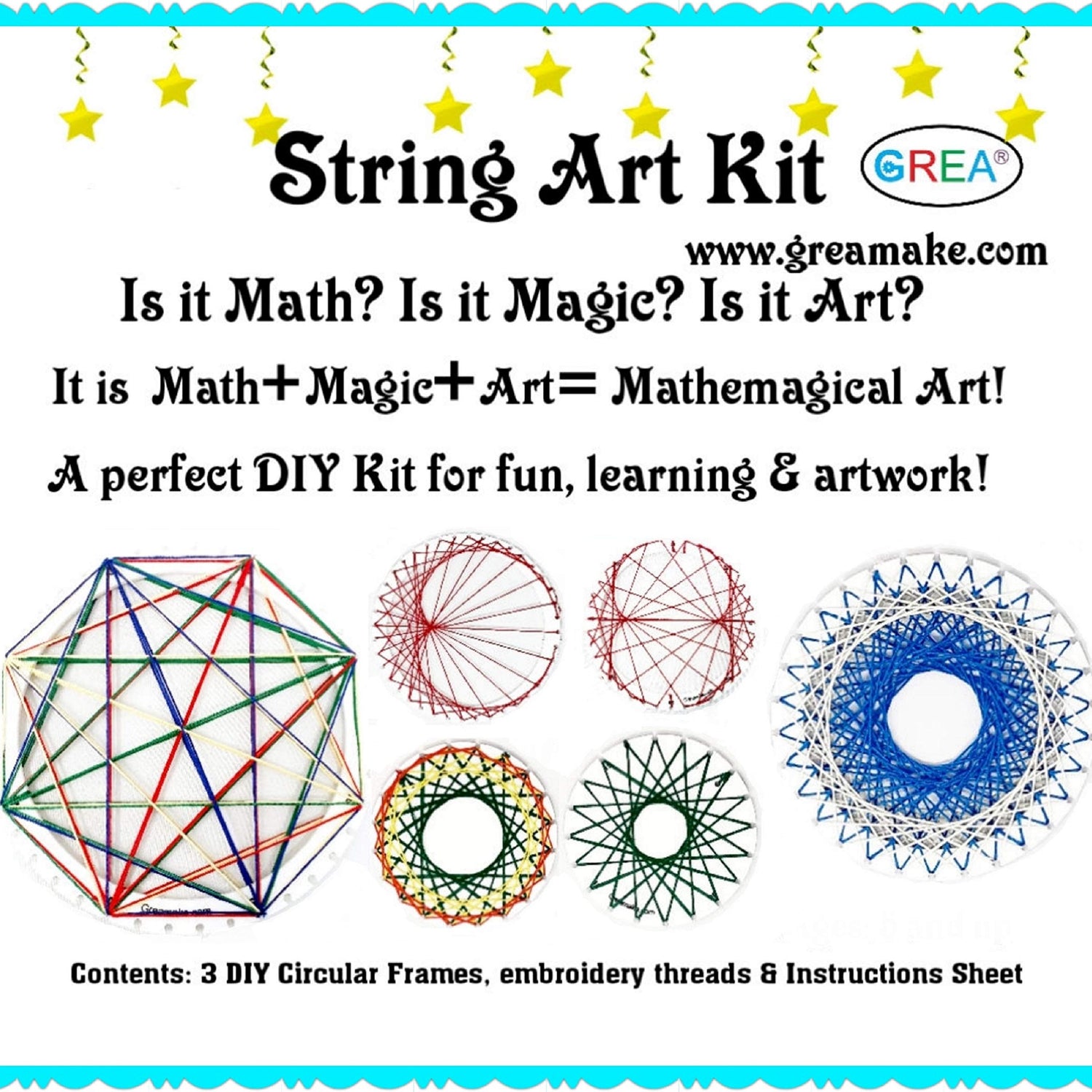 - Is it Math? Is it Art? Or is it Magic? It is Mathemagical Art ! Using colorful threads create amazing geometric patterns and learn Math the fun way! Unlimited number of possibilities of stringing can be tried out with the same set, bringing out your creativity and innovative nature.!