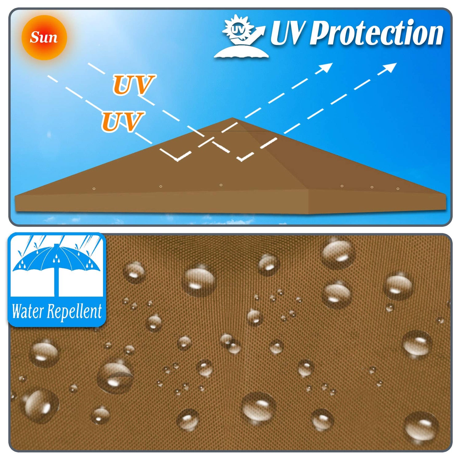 Strong Camel 10x10 Canopy Replacement top Gazebo Canopy Top Patio Pavilion Cover Sunshade Pplyester Single Tier-Brown