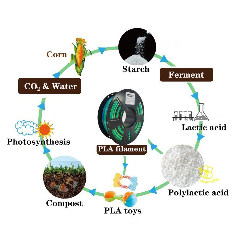 - PLA filament printing Tips: Recommend the heat bed 50-60 ° C, nozzle temperature: 195-220 ° C, to avoid tangling, insert the filament into the spool holes to fix it after each use. If you find that the filament breaks while printing, please contact us. We'll show you how to improve it and avoid it.