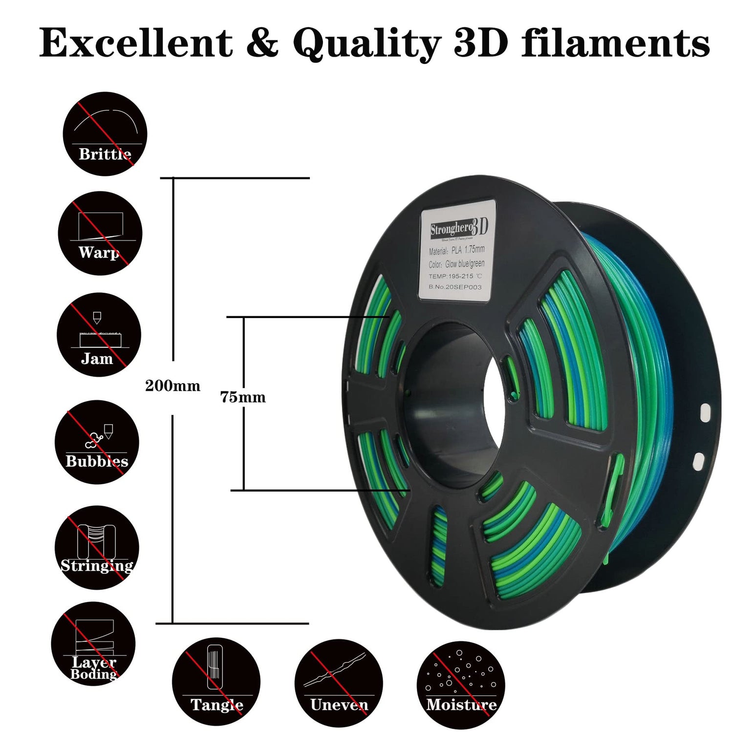 Stronghero3D PLA 3D Printer Filament,Glow in The Dark Filament, Glow Green/Blue 1.75mm(2.2LBS) Accuracy +/-0.05mm for Ender3 Ender5 CR10